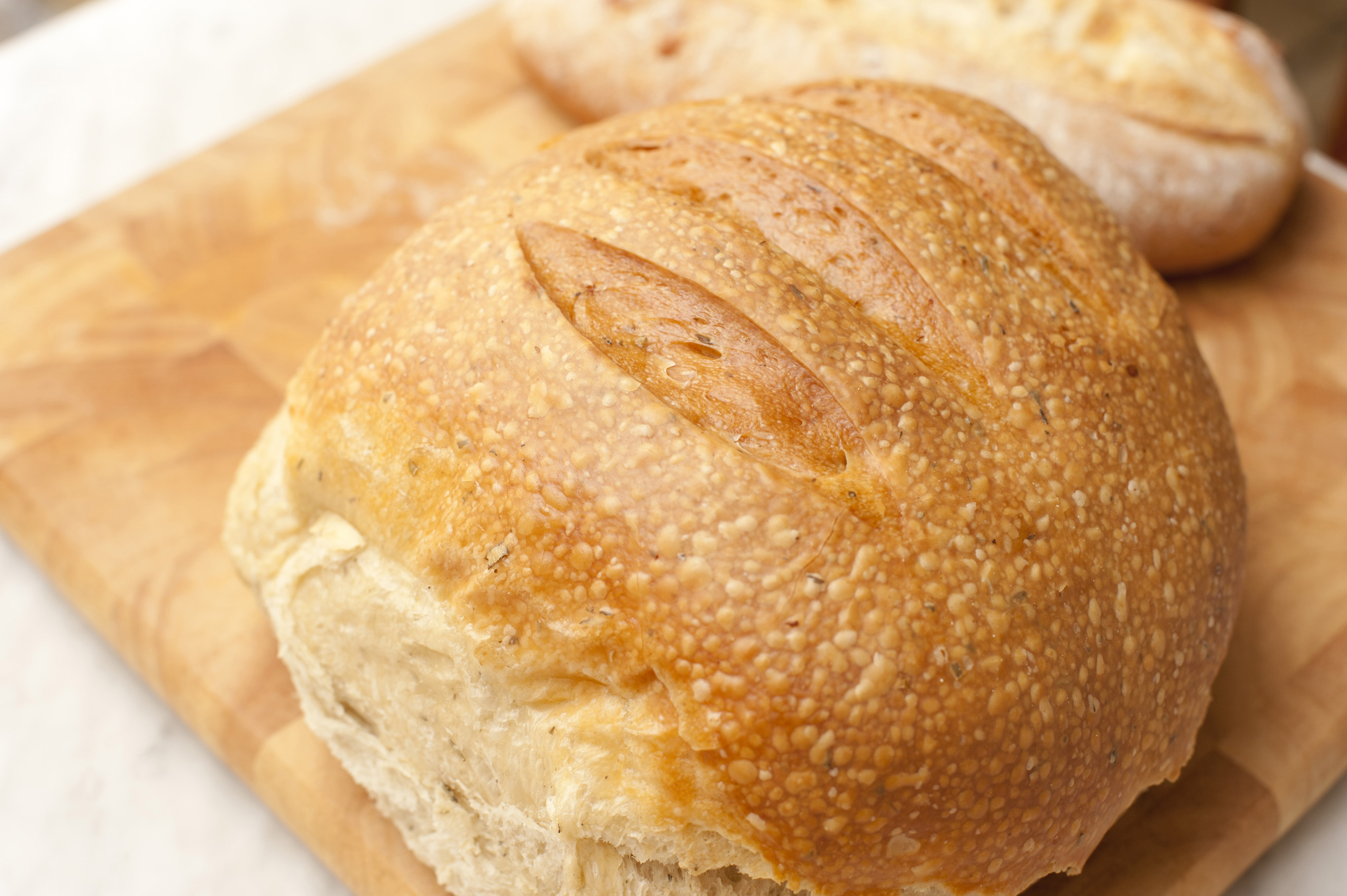 Keywords: food, baked, bread, bread board, close-up, crust, nutritious, round, variety, white