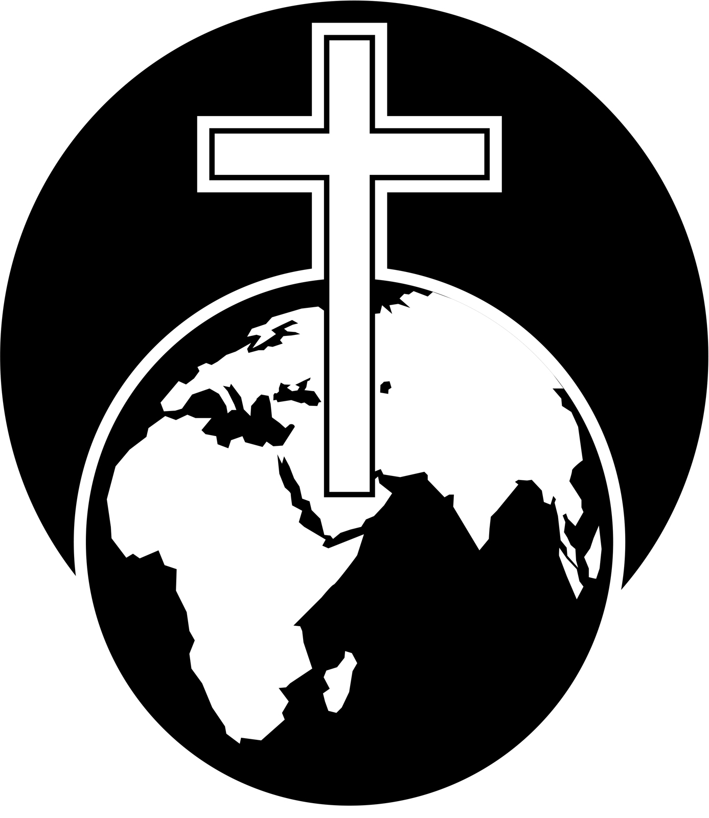 Christian cross and world globe clip art illustration.