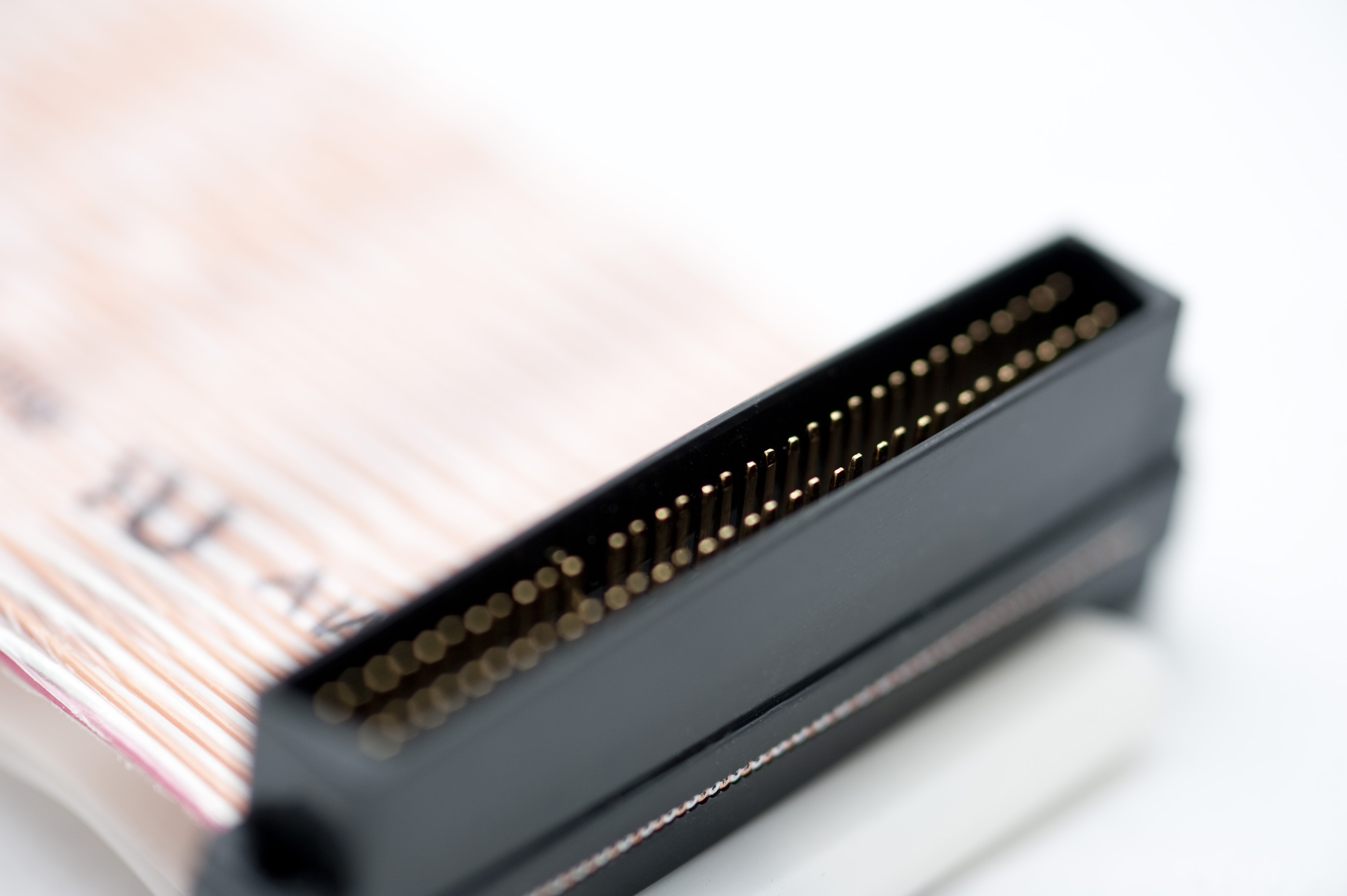 Keywords: connector, SCSI, pins, narrow depth of field, connector, termination, ribbon cable, high key, bright, white, light, computer, SAN