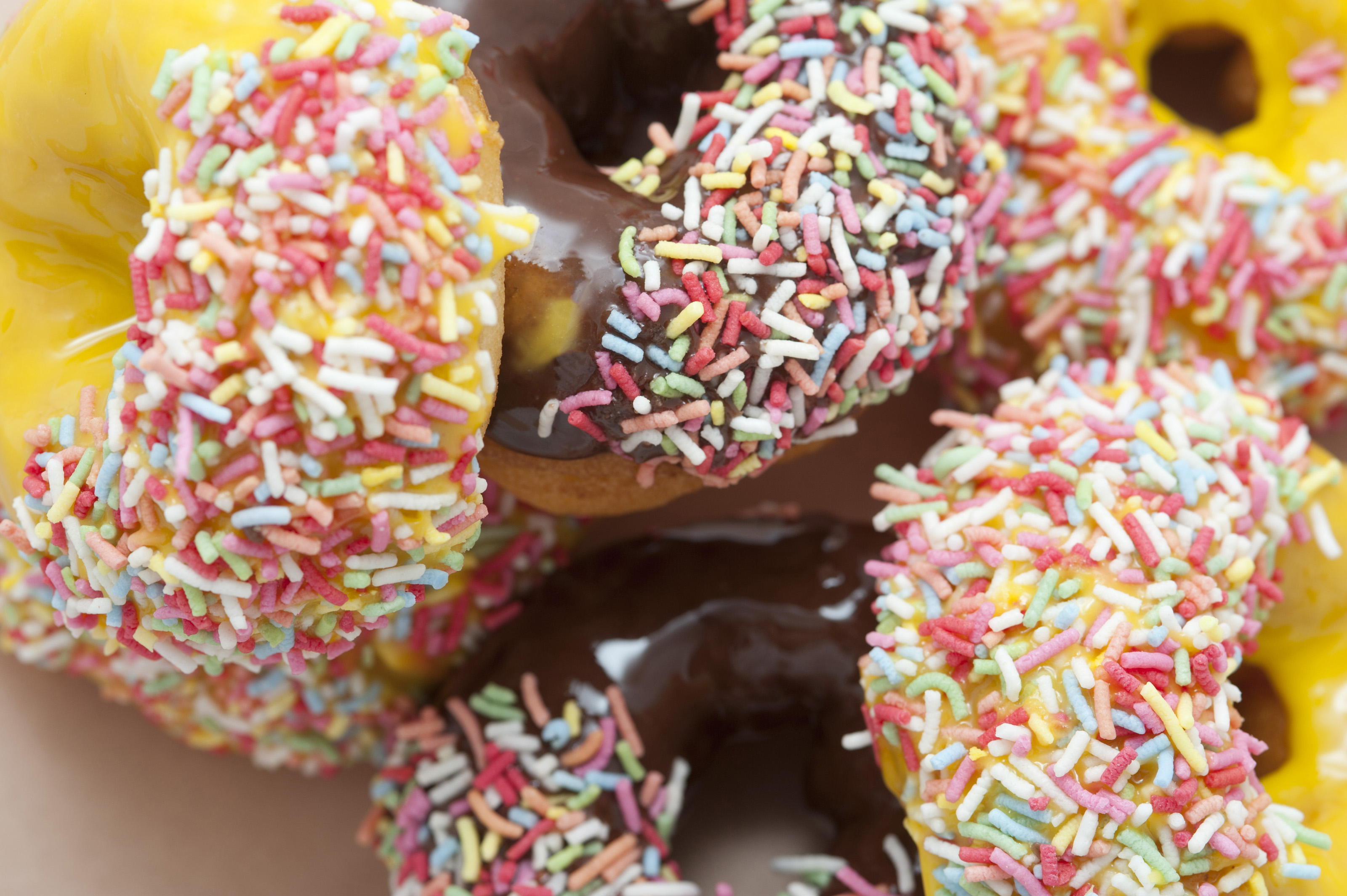 Keywords: dessert, sweet, baking, chocolate, donuts, doughnuts, food, glazed, lemon, selection, sprinkles, ring, colorful, cakes, confectionery, multicoloured