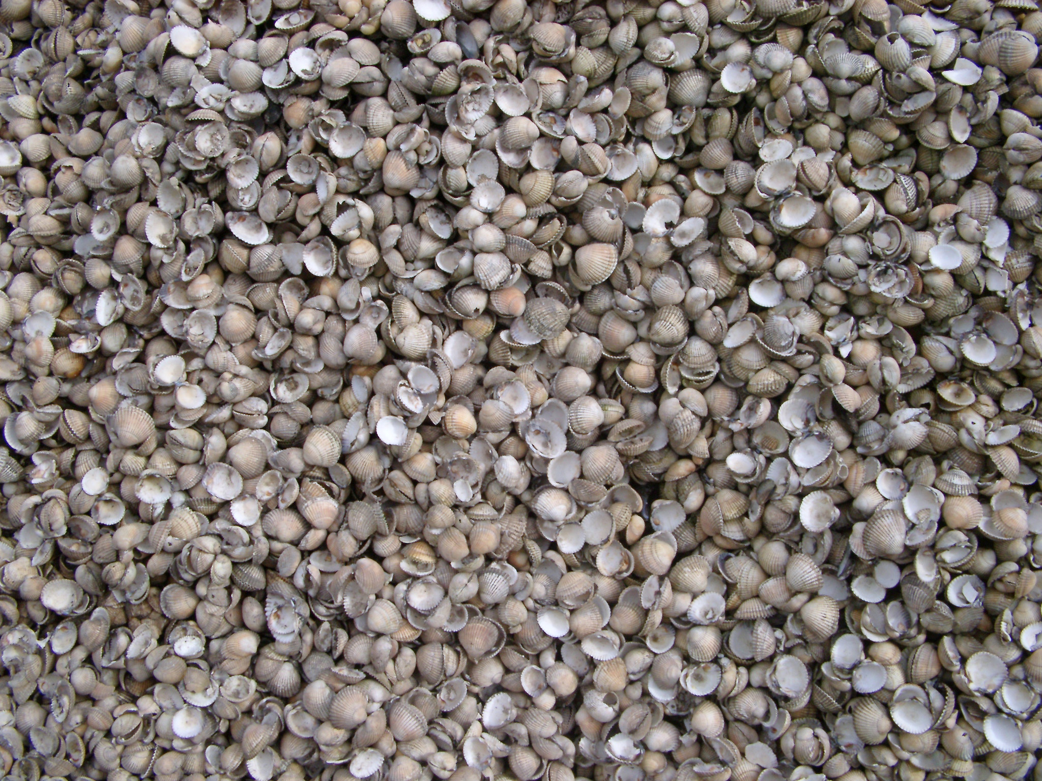 a background of thousands of white shells