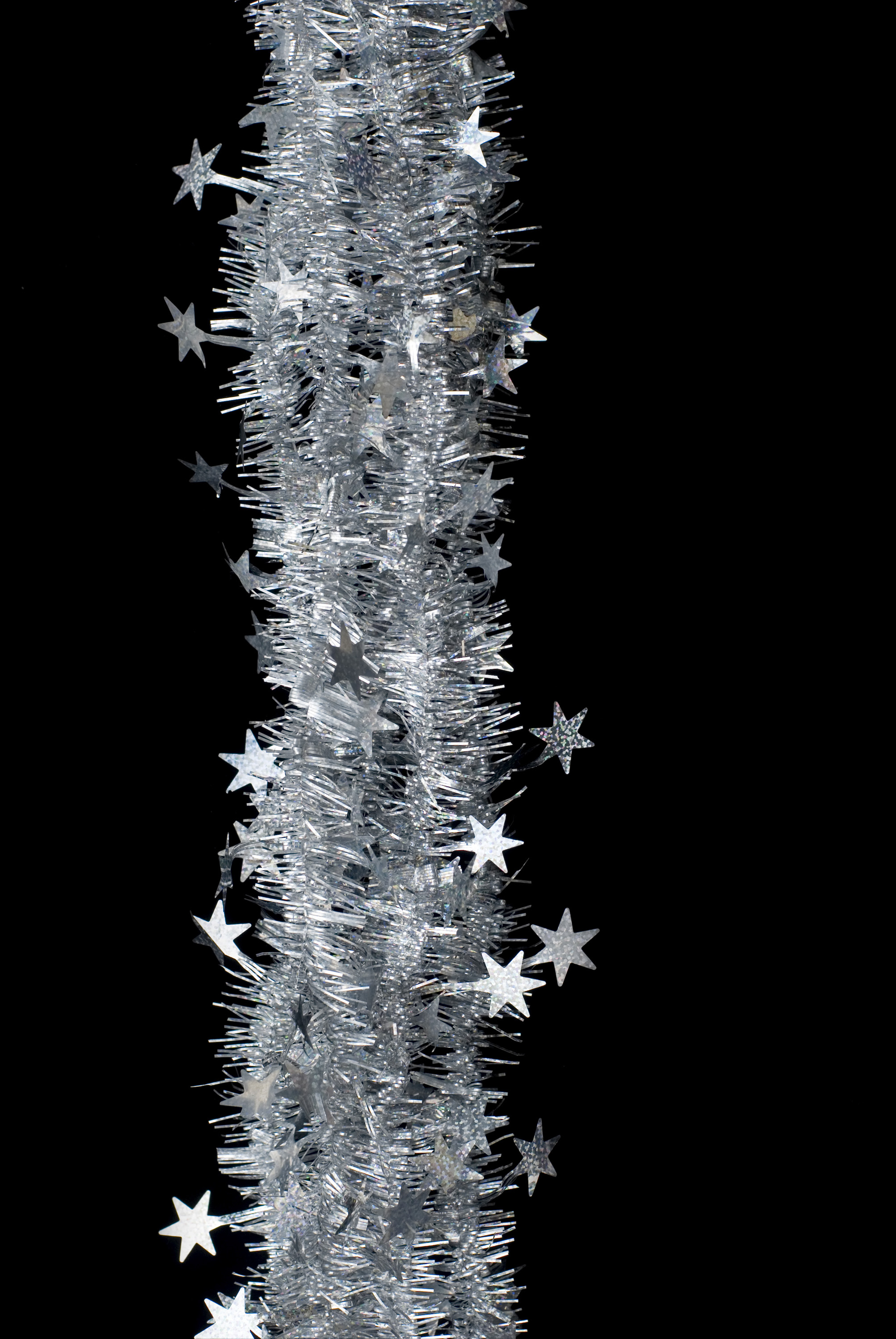 Keywords: christmas, festive, holidays, seasonal, xmas, holiday, garland, tinsel, string, long, straight, silver, sparkle, black, background, border