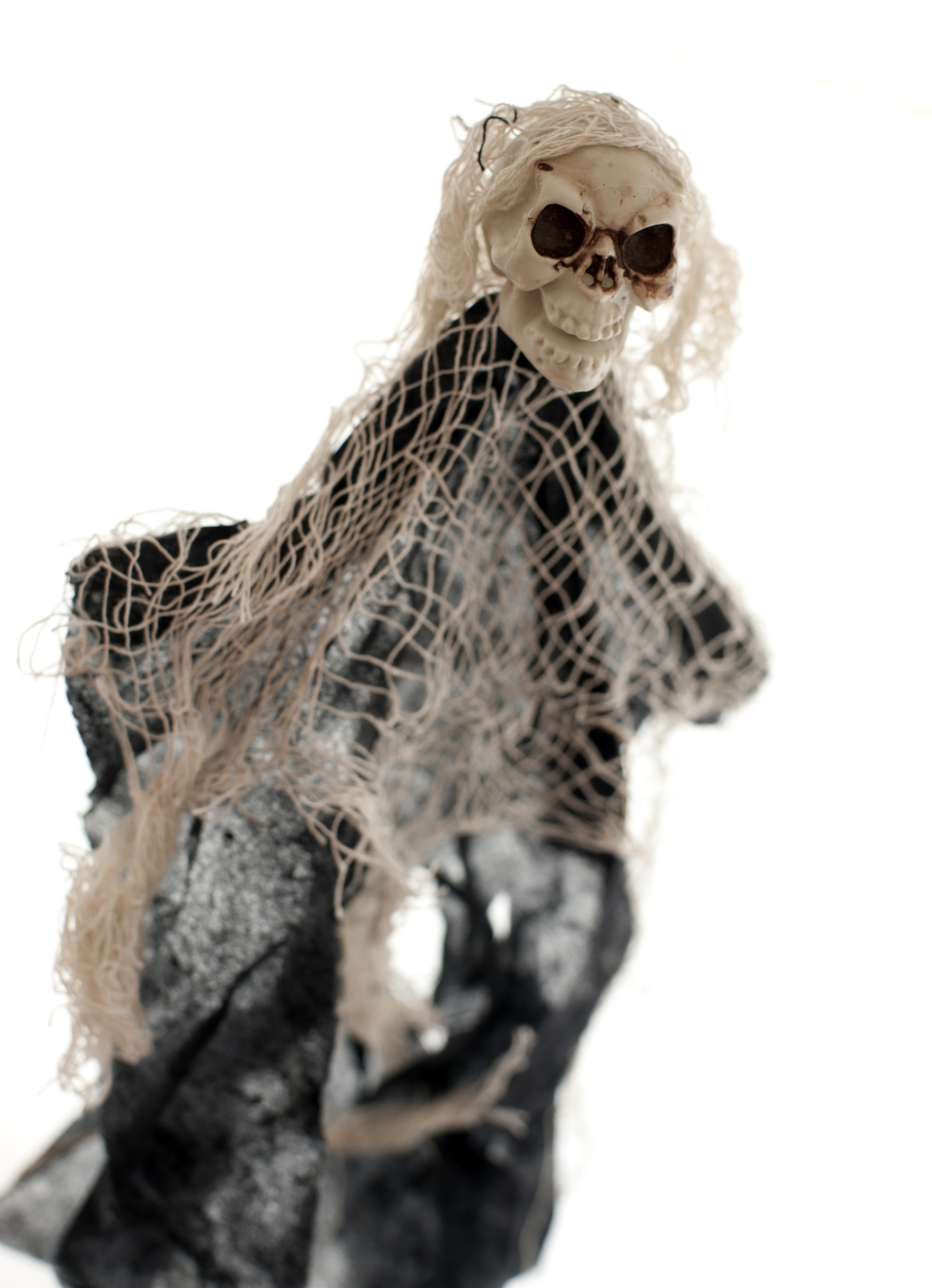 Keywords: creepy, halloween, scary, frightening, background, black, cloth, isolated, netting, puppet, skull, white, evil, horror, skeleton