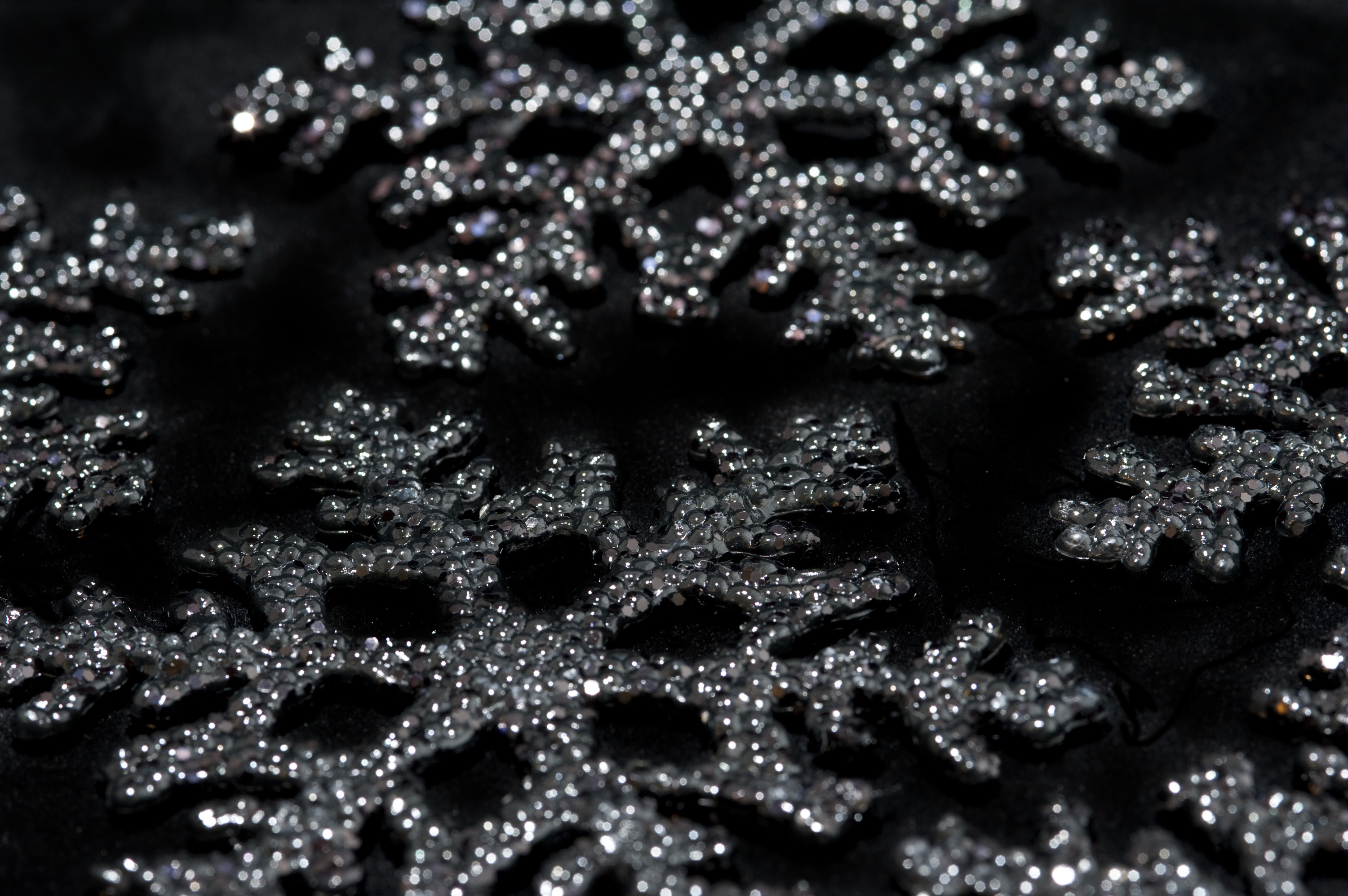 christmas snowflake shaped decorations on black