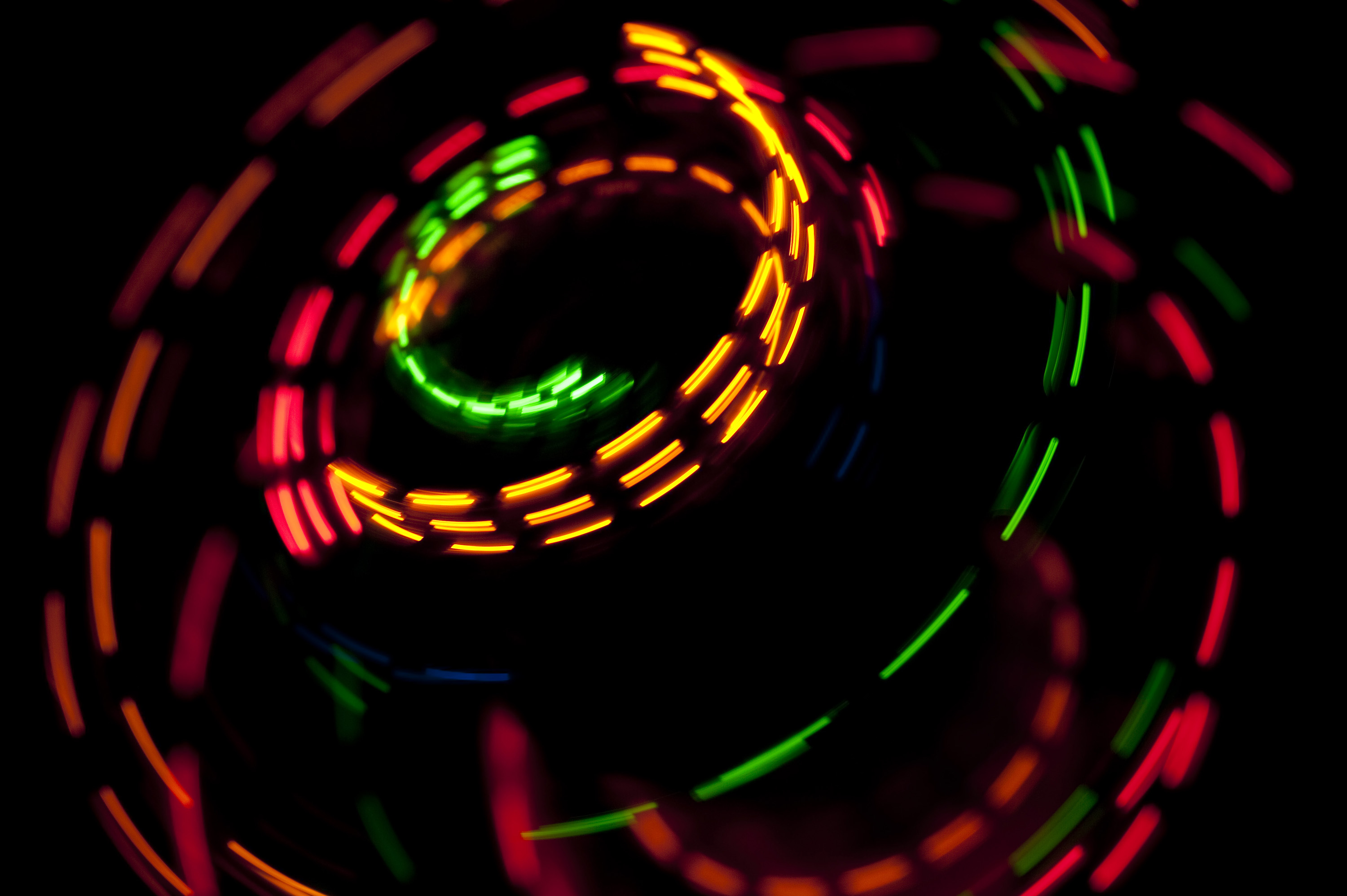 Keywords: light, pattern, circles, trails, trace, circle, colour, color, coloruful, multi-colored, multicoloured, bright, saturated, glowing, abstract, unusual, eye catching, dashed, dots, fashes