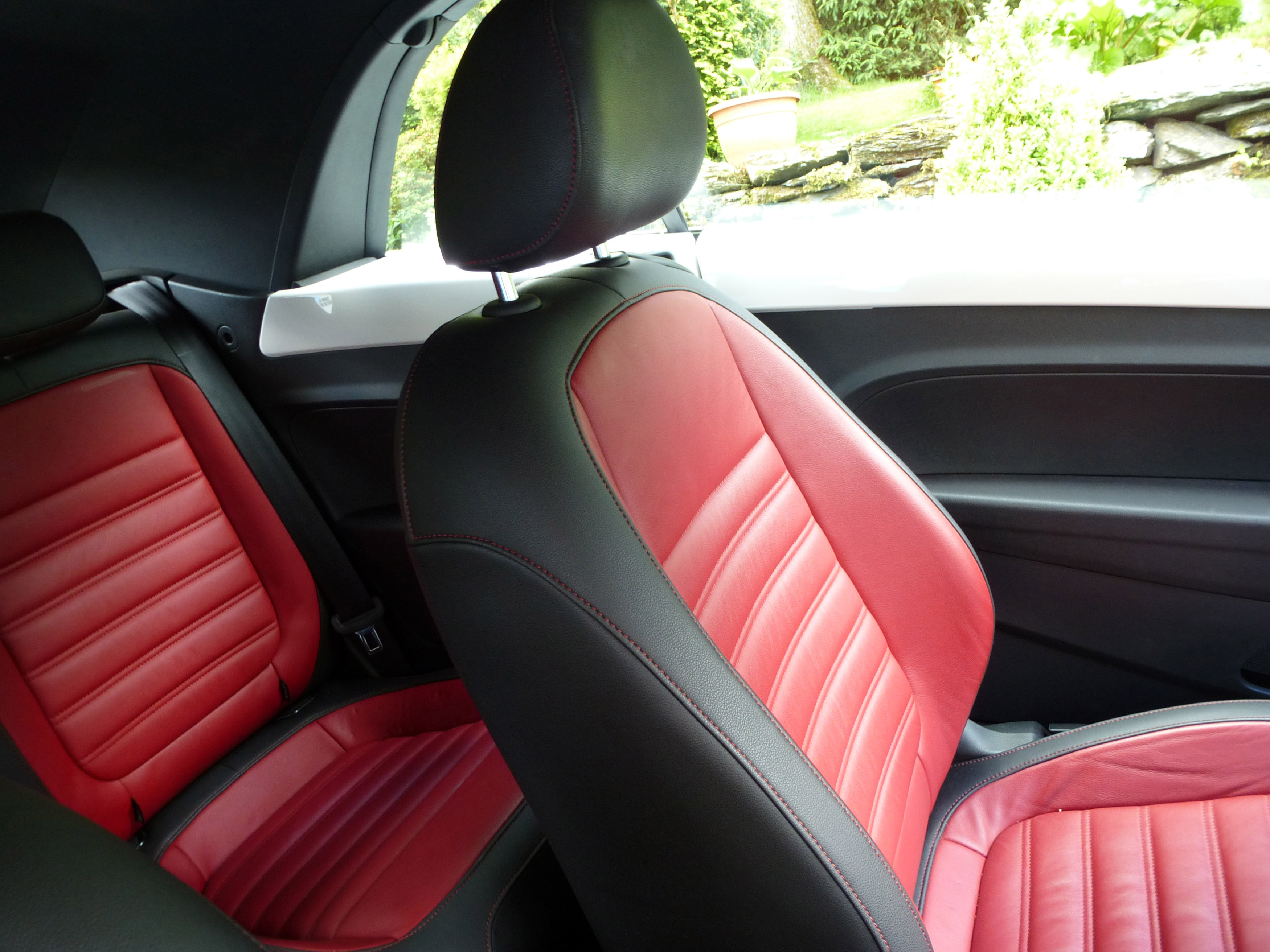 Keywords: automobile, car, inside, interior, modern, motor, transportation, vehicle, bucket, driver, leather, passenger, red, seats, upholstery, cabriolet, coupe, convertible