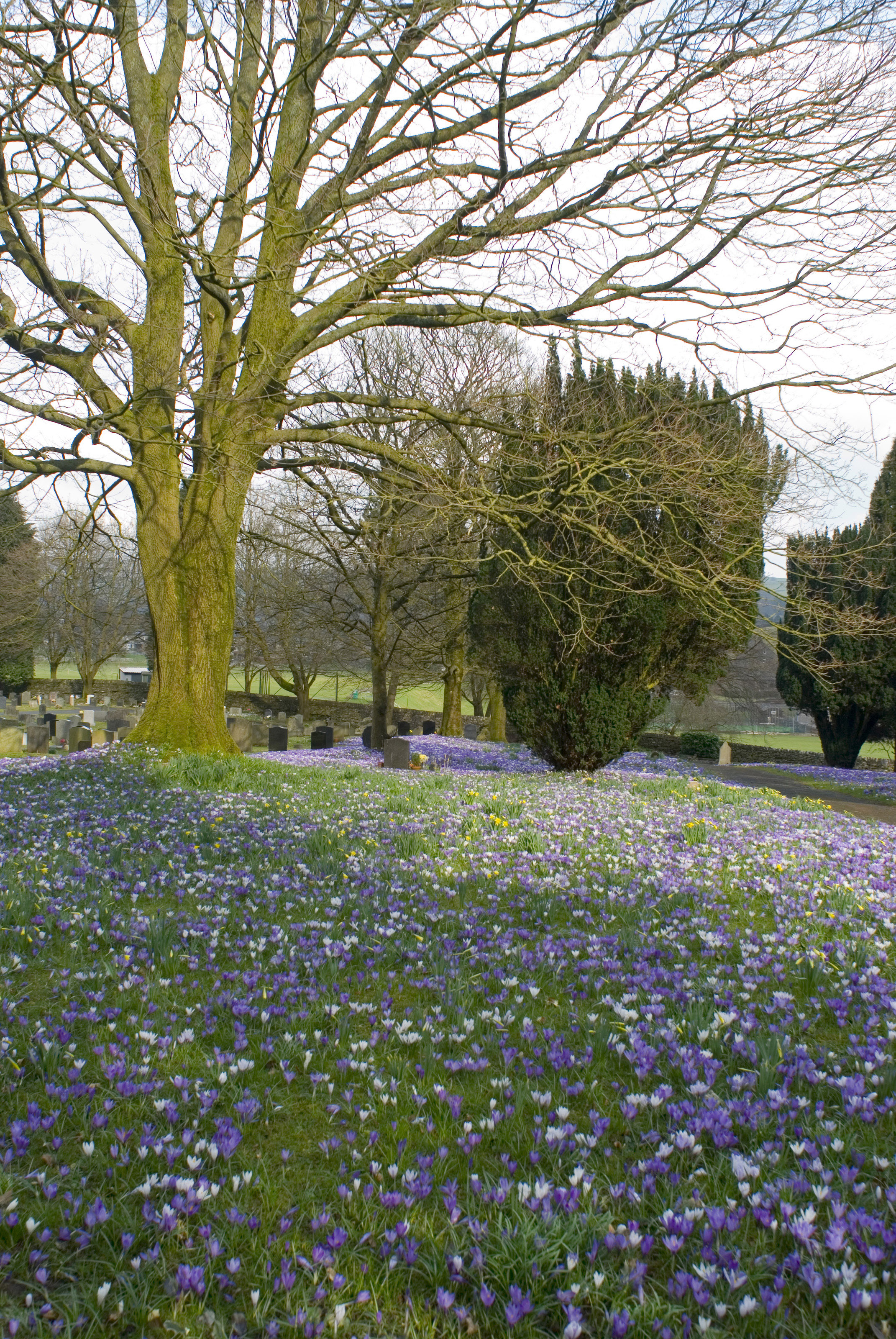 Keywords: tree, spring, season, branches, weather, purple, deciduous, climate, bulbs, crocus, floral, flowers, flowering, blooms, churchyard