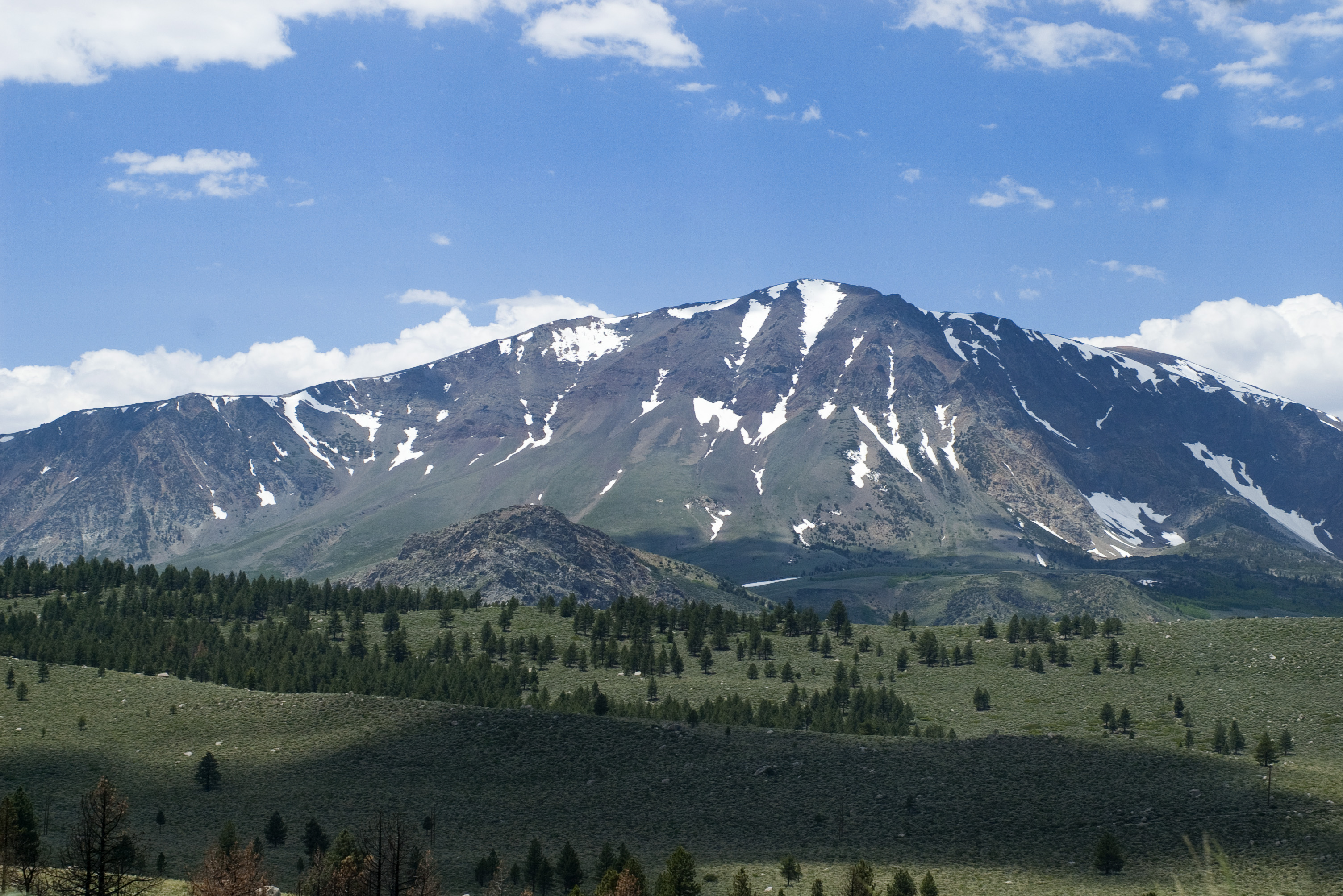 Keywords: moutntain, sierra navada, mountains, grange, hills, california, spring, snow, melt, snow capped, white, grass, green, clouds, blue sky