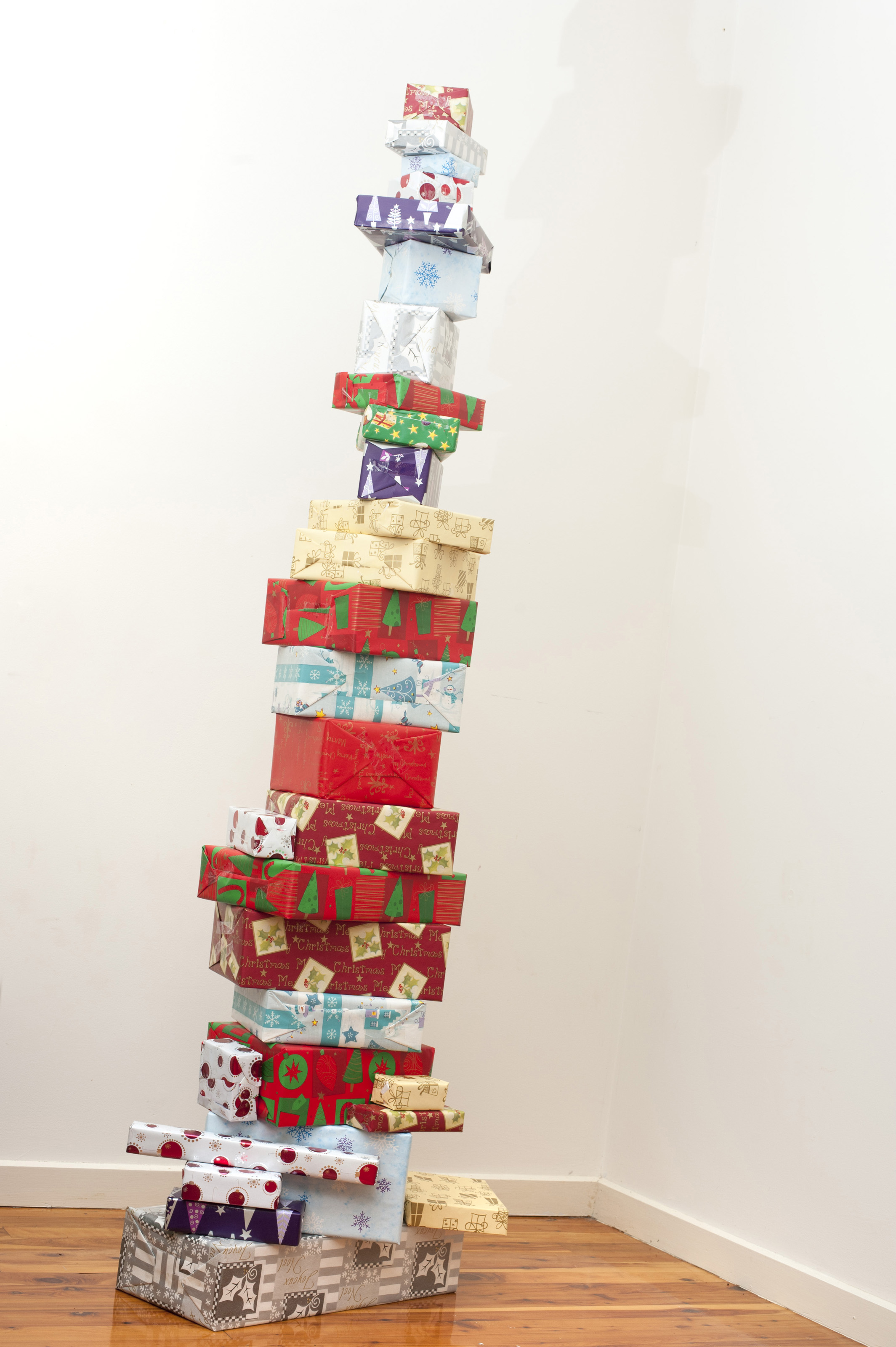 8673 Tall stacked tower of Christmas gifts - this image by christmashat is licensed under a Creative Commons Attribution 3.0 Unported License.