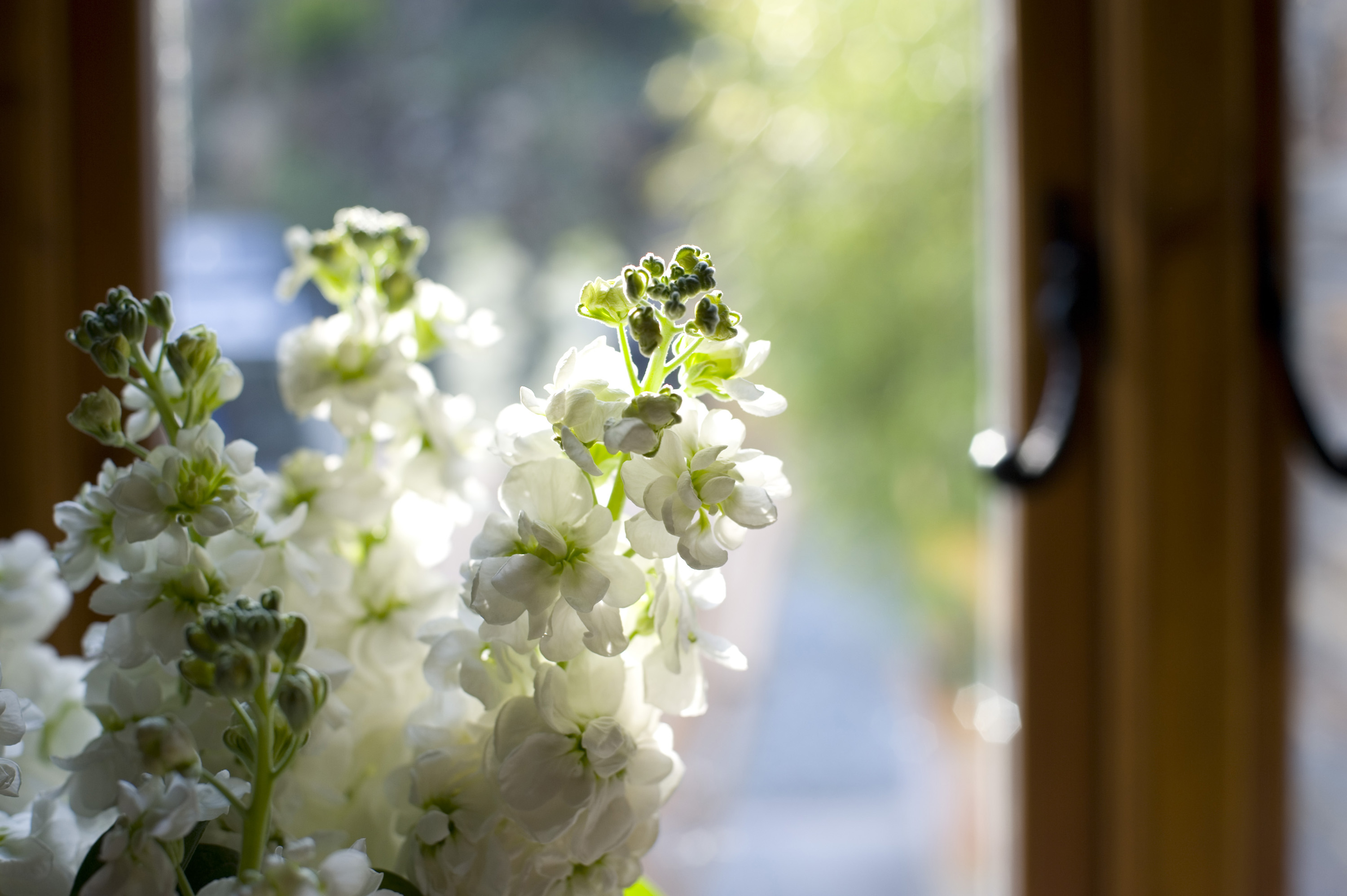 Keywords: stocks, flowers, white, vase, window, windowsill, old fashioned, traditional