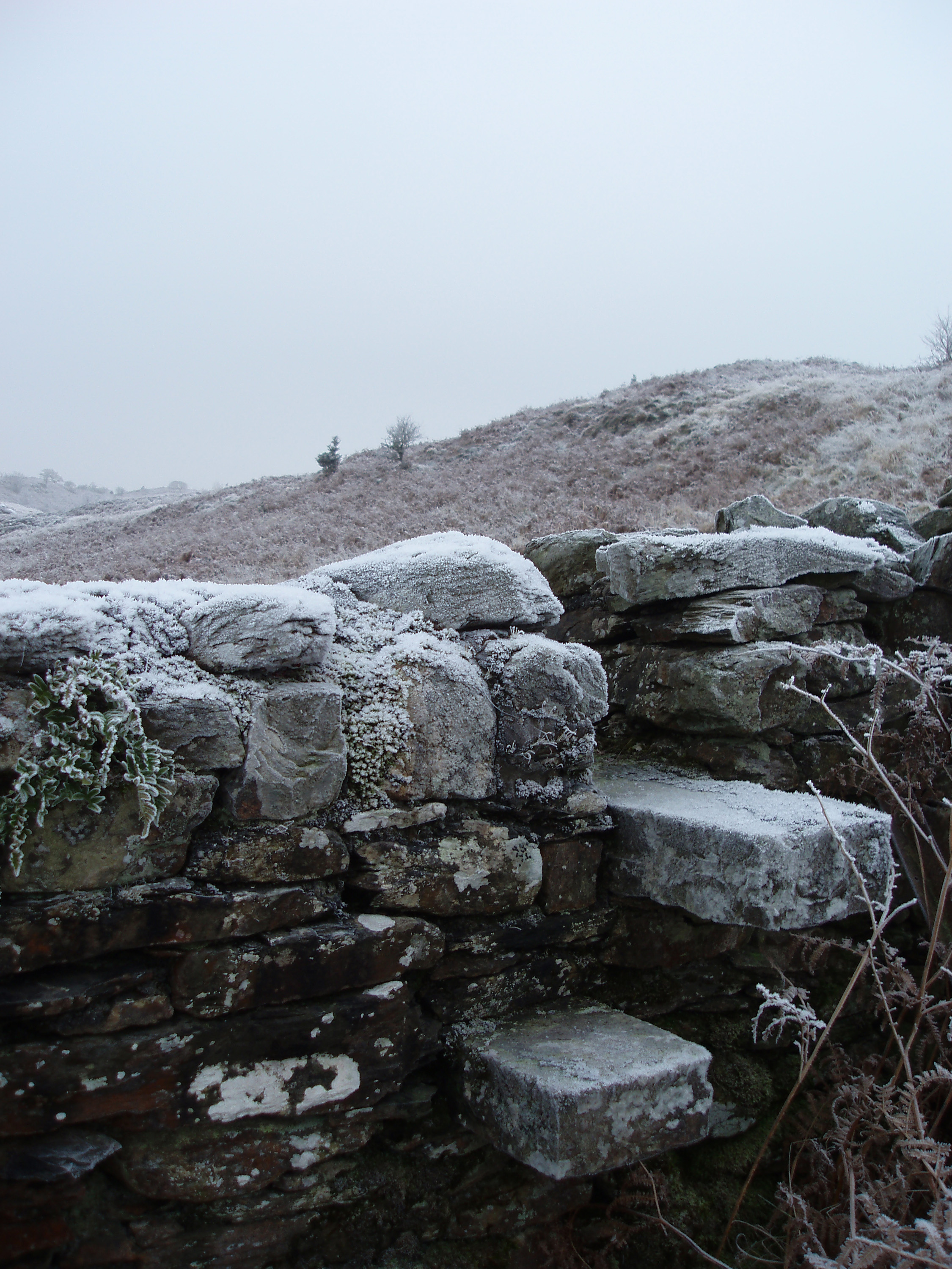 Keywords: stile, stone stile, steps, footpath, frost, winter, cold, wintery, icy, frozen, frosting, white, crystals
