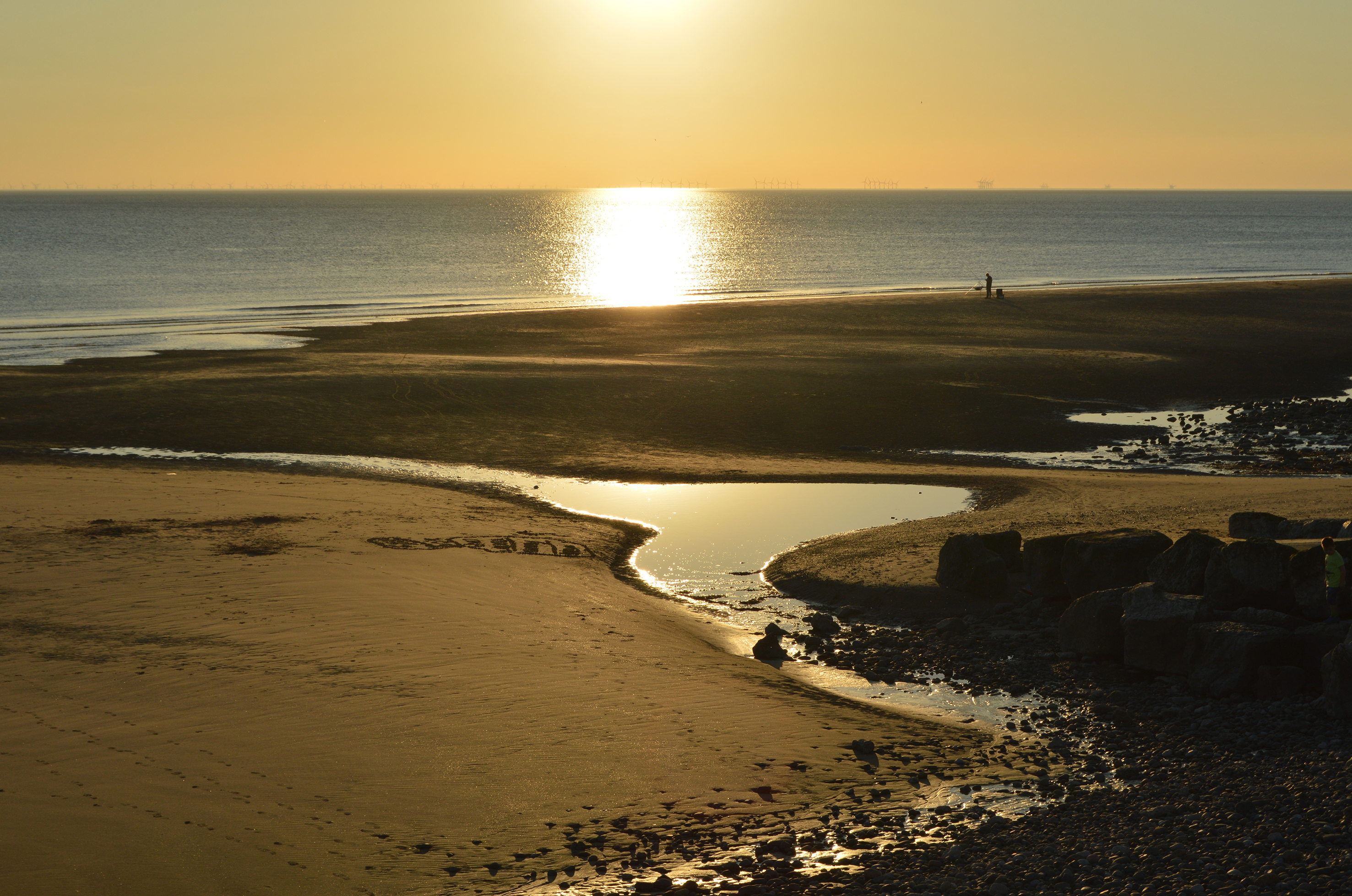 Keywords: sun, sea, sand, holiday, romantic, calm, orange, golden, horizon, dusk, fish, fishing, Blackpool, uk