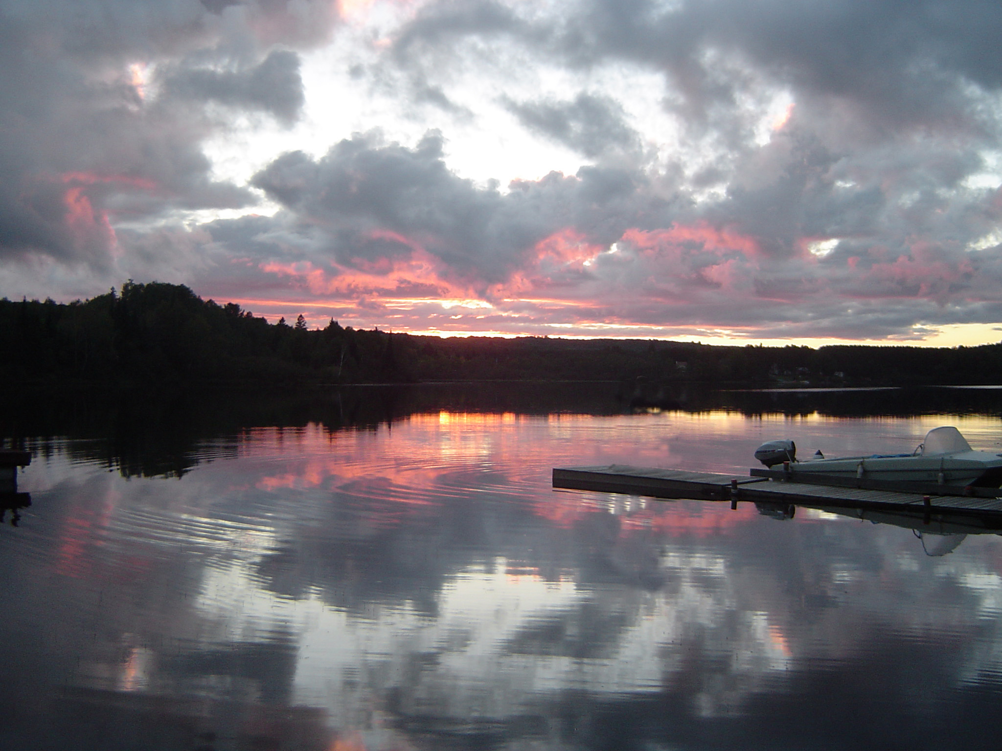Keywords: sunset, algonquin, sunset, orange, clouds, reflection, water, jetty, pontoon