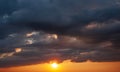 storm clouds breaking over a beautiful orange sunset
