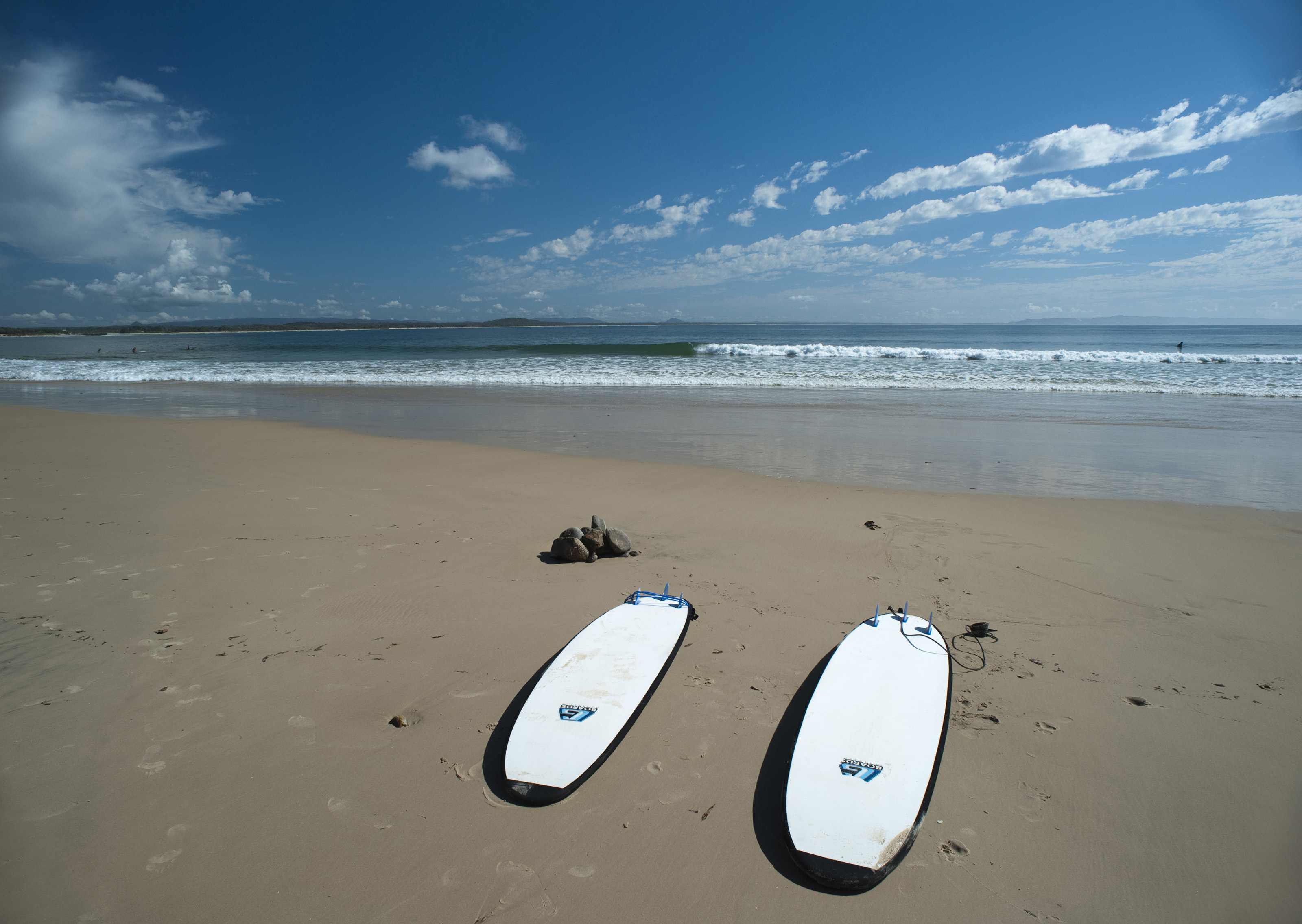 Keywords: beach, calm, deserted, equipment, ocean, sand, sport, surf, surfboards, surfing, tropical, two, waves, exercise, recreation