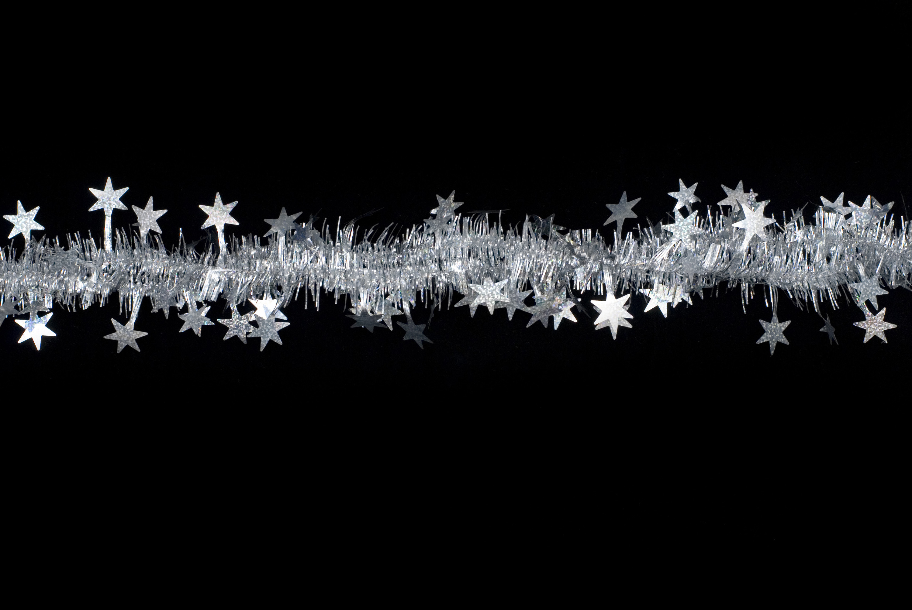 Keywords: christmas, festive, holidays, seasonal, xmas, holiday, garland, tinsel, string, long, straight, silver, sparkle, black, background, border, star