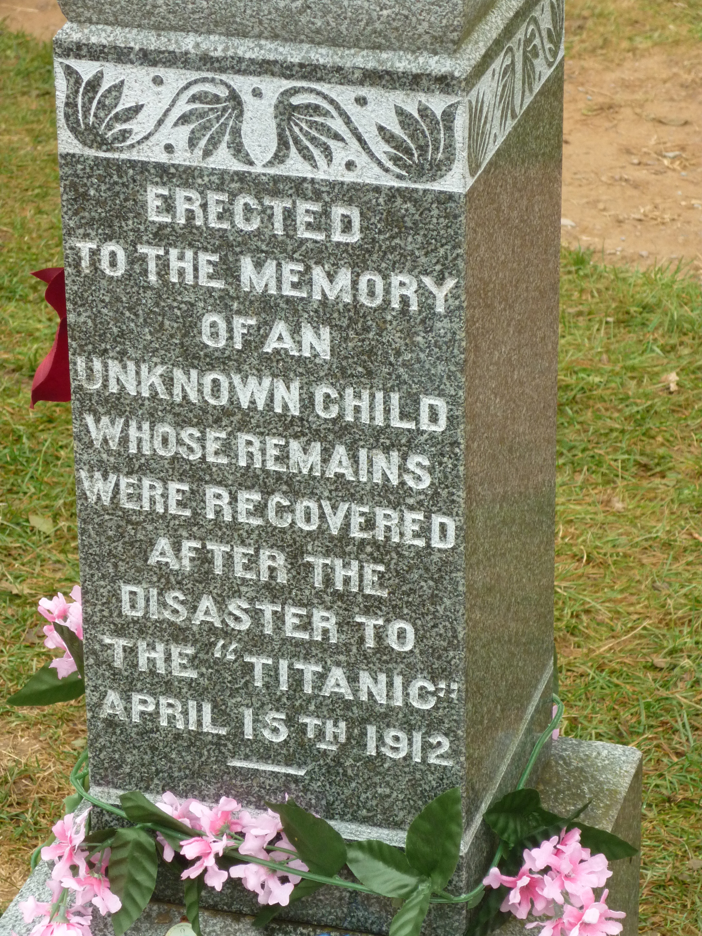 Memorial headstone to an unknown child who was a victim of the Titanic disaster