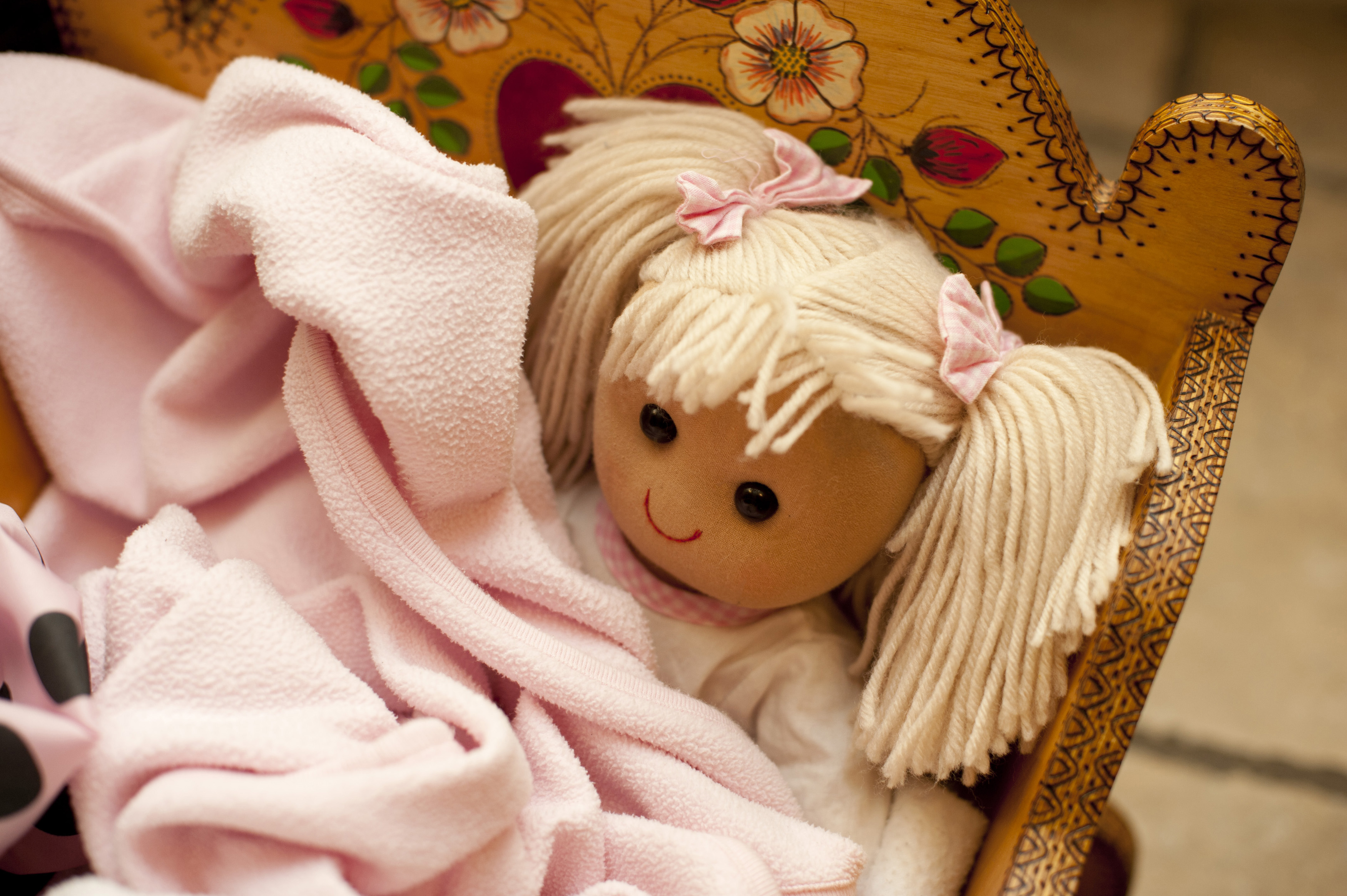 Keywords: cradle, doll, toy, children, above, baby, blond, childhood, cute, endearing, blankets, face, concept, nap, sleeping, girls toy, dolly