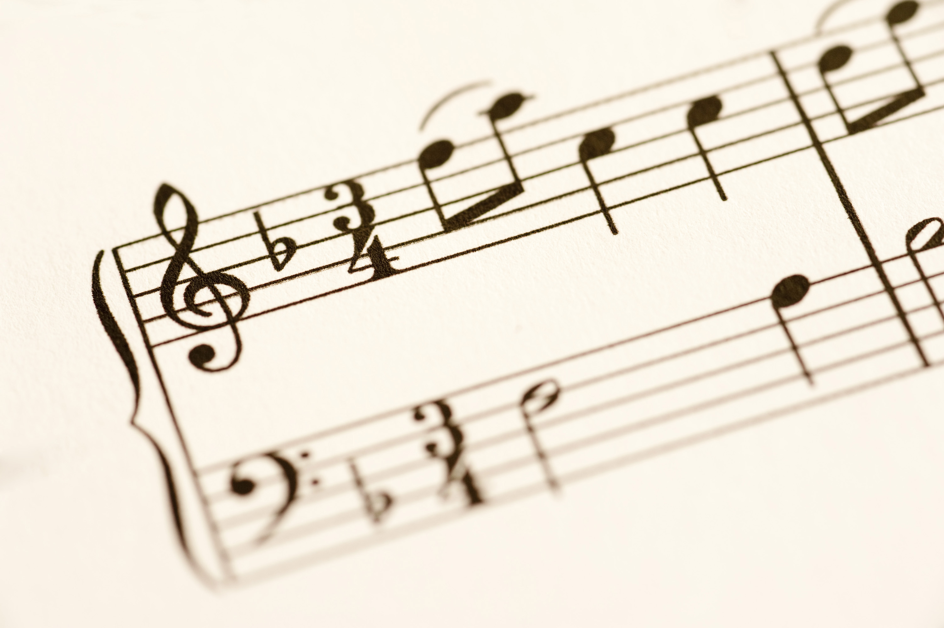 treble and bass clefs on a sheet of printed music