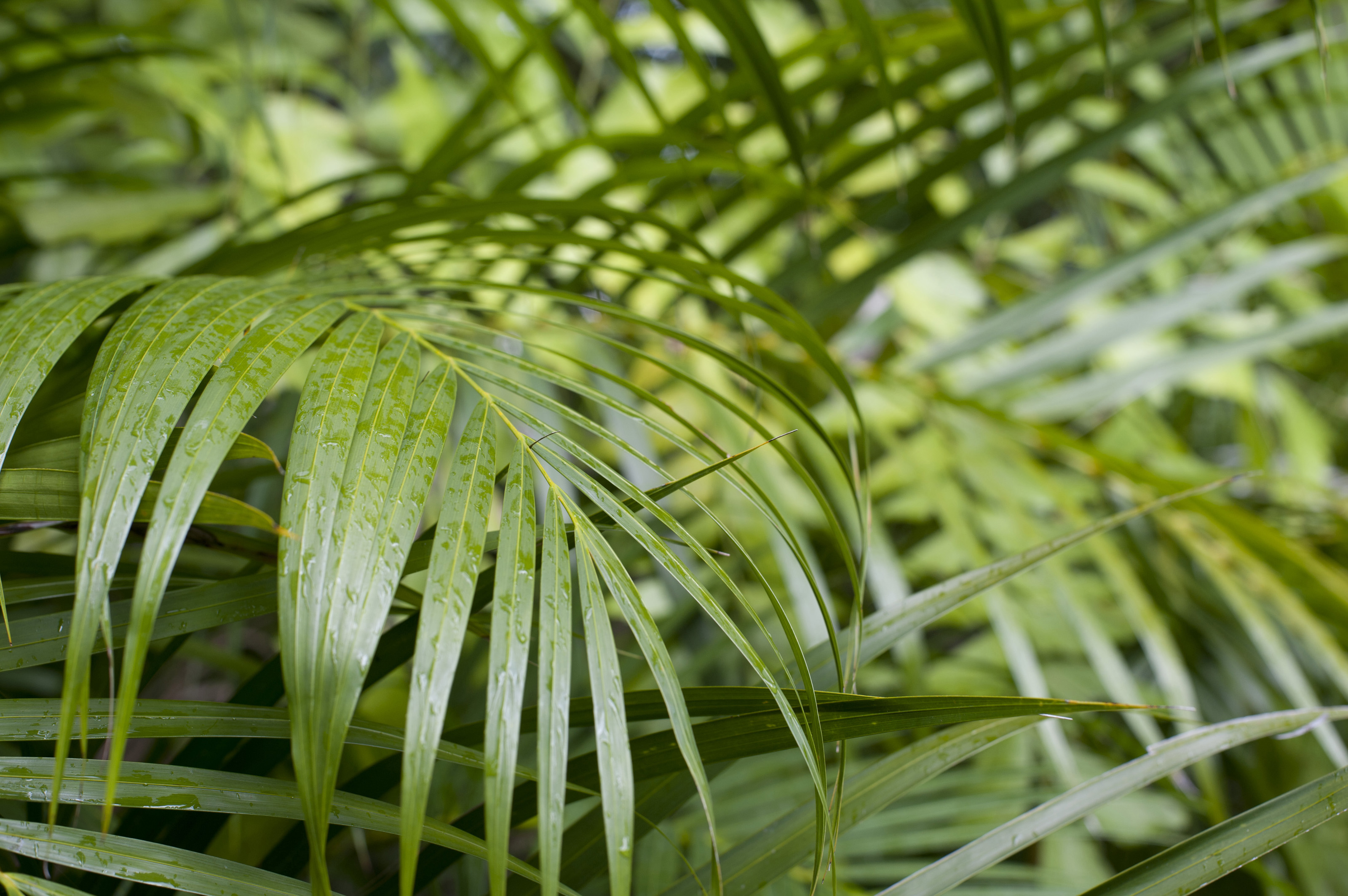Keywords: cane, frond, green, leaves, lush, nature, palm, plant, rainforest, tropical, damp, wet, rain drops