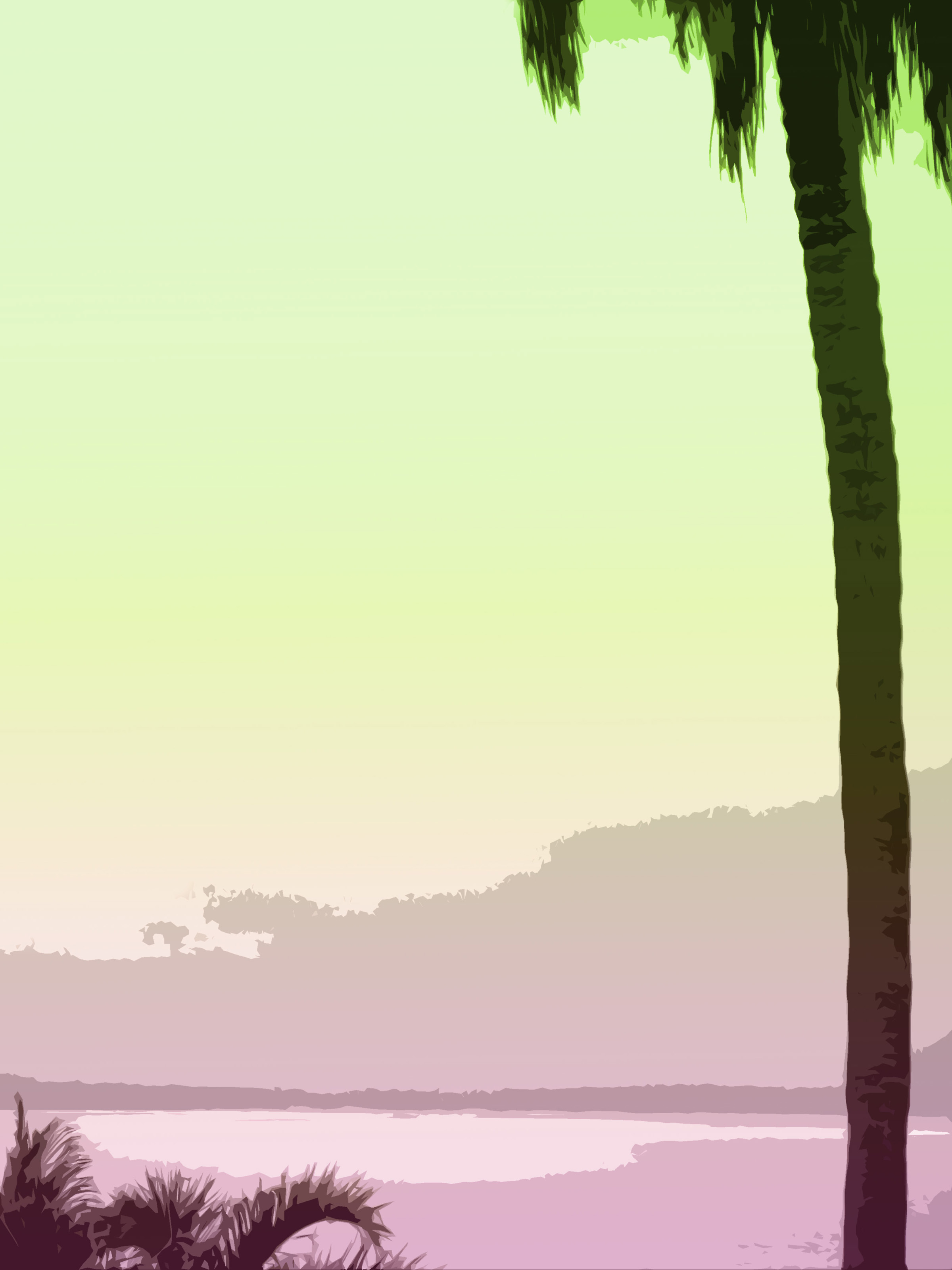 a traced tropical backdrop featuring a palm tree and foliage with graduated colored background