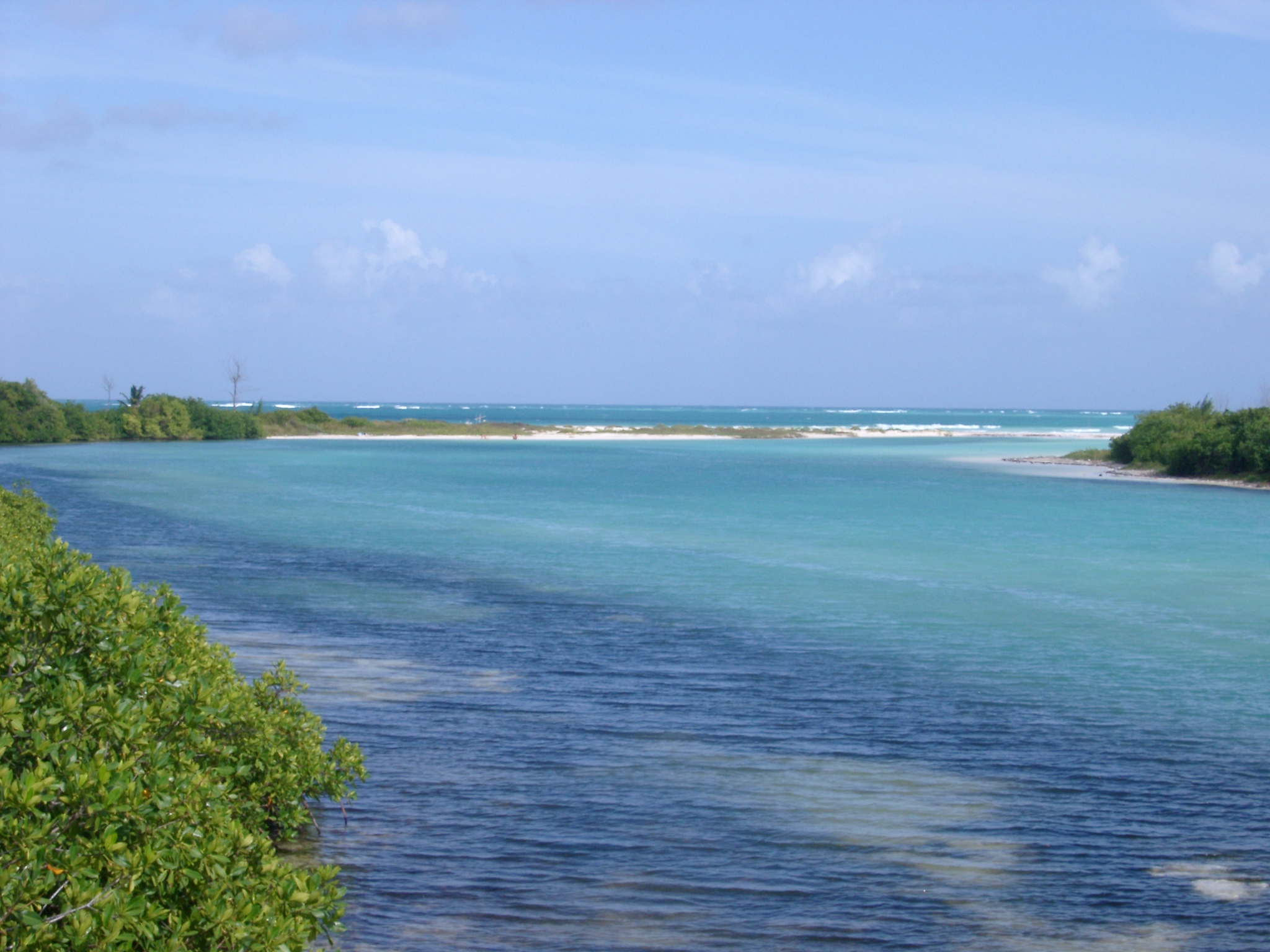 saltwater tropical mangrove wetlands with an outlet to the ocean