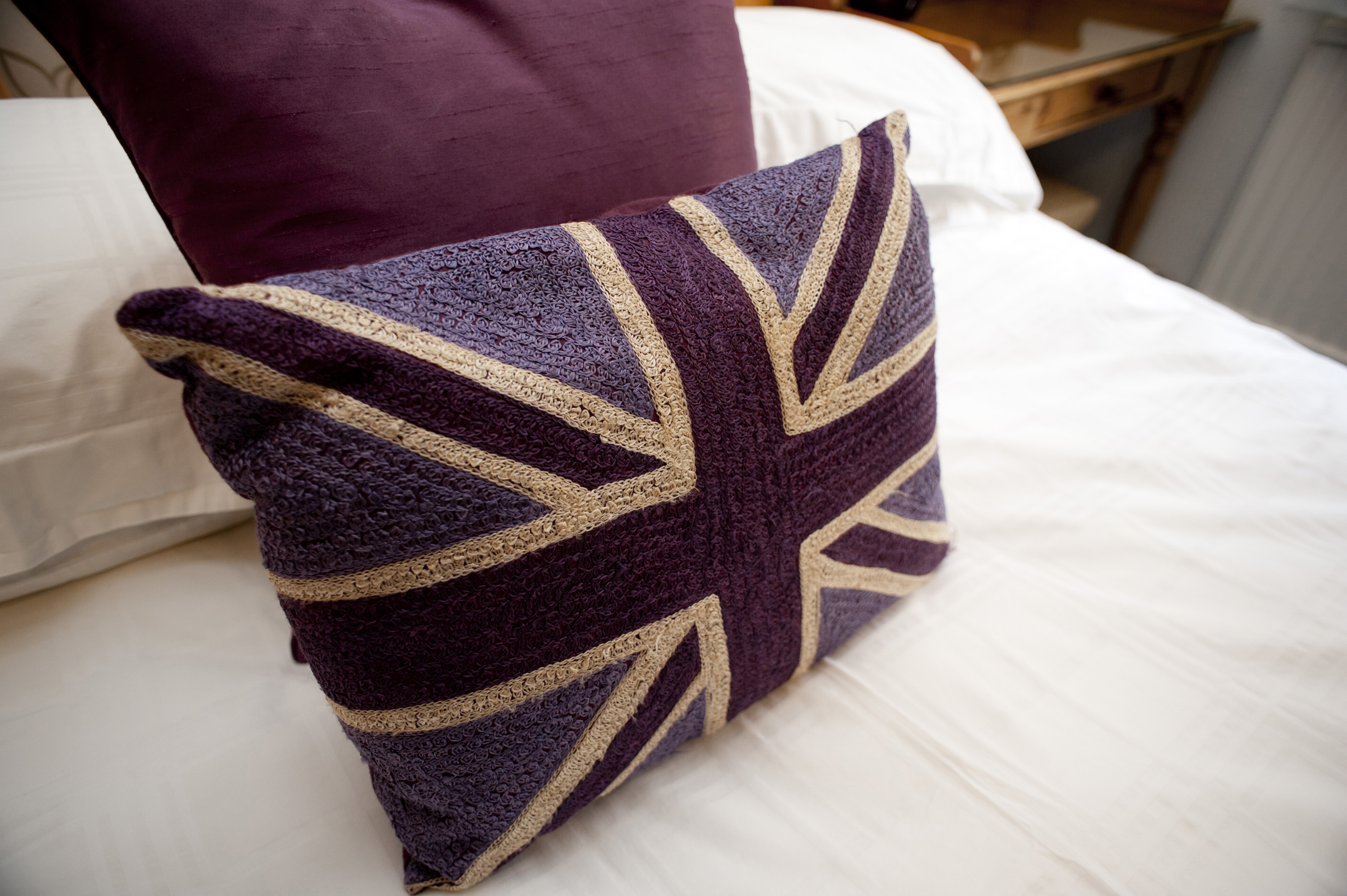 Keywords: bed, bedroom, britain, cushion, decor, patriotic, pillow, union flag, union jack, united kingdom, pattern, textile, accommodation, bed and breakfast, themed