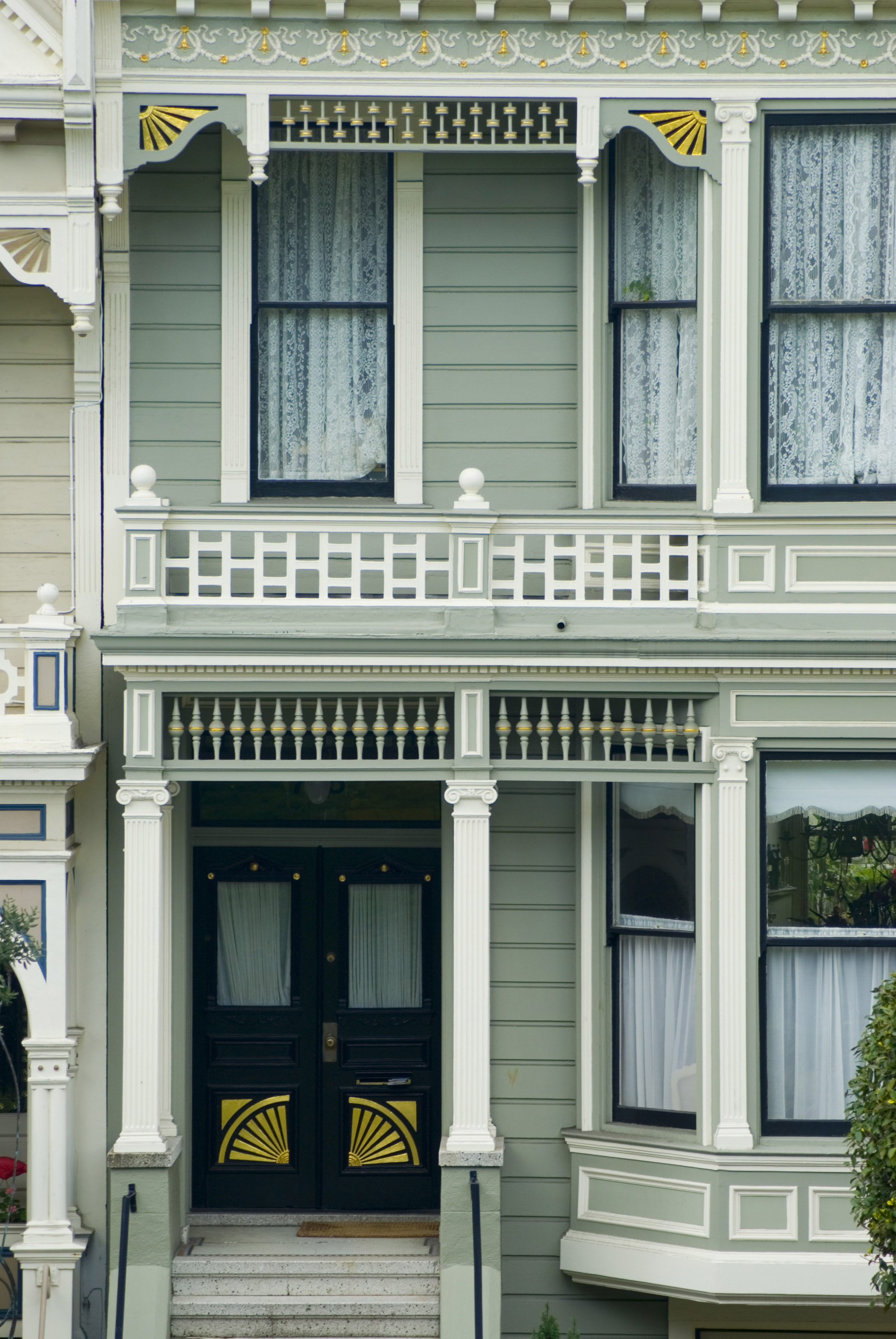 Details of historic wooden house fronts, alamo square, san francisco - not property released
