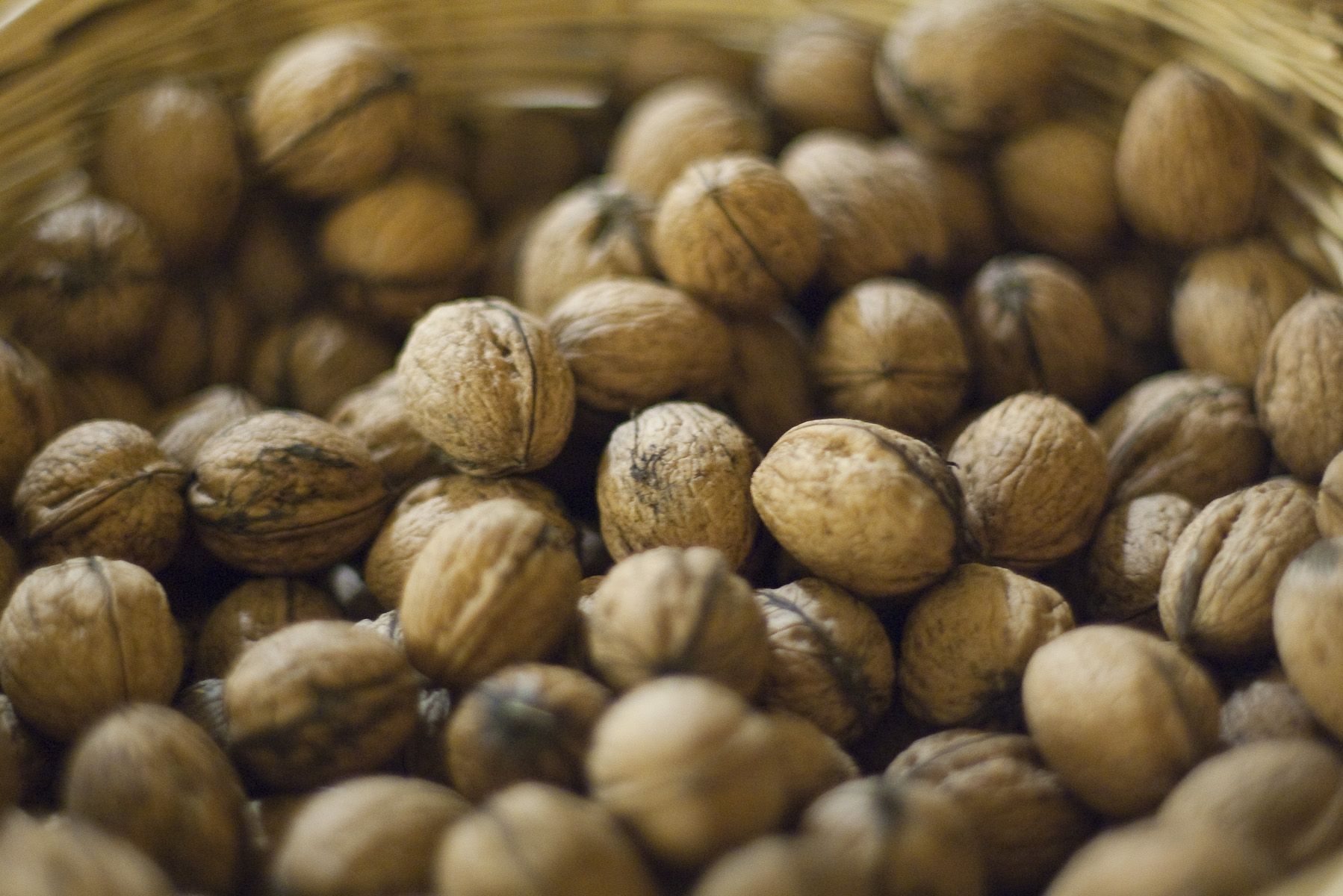 a bowl of wallnuts pictured with a narrow depth of field