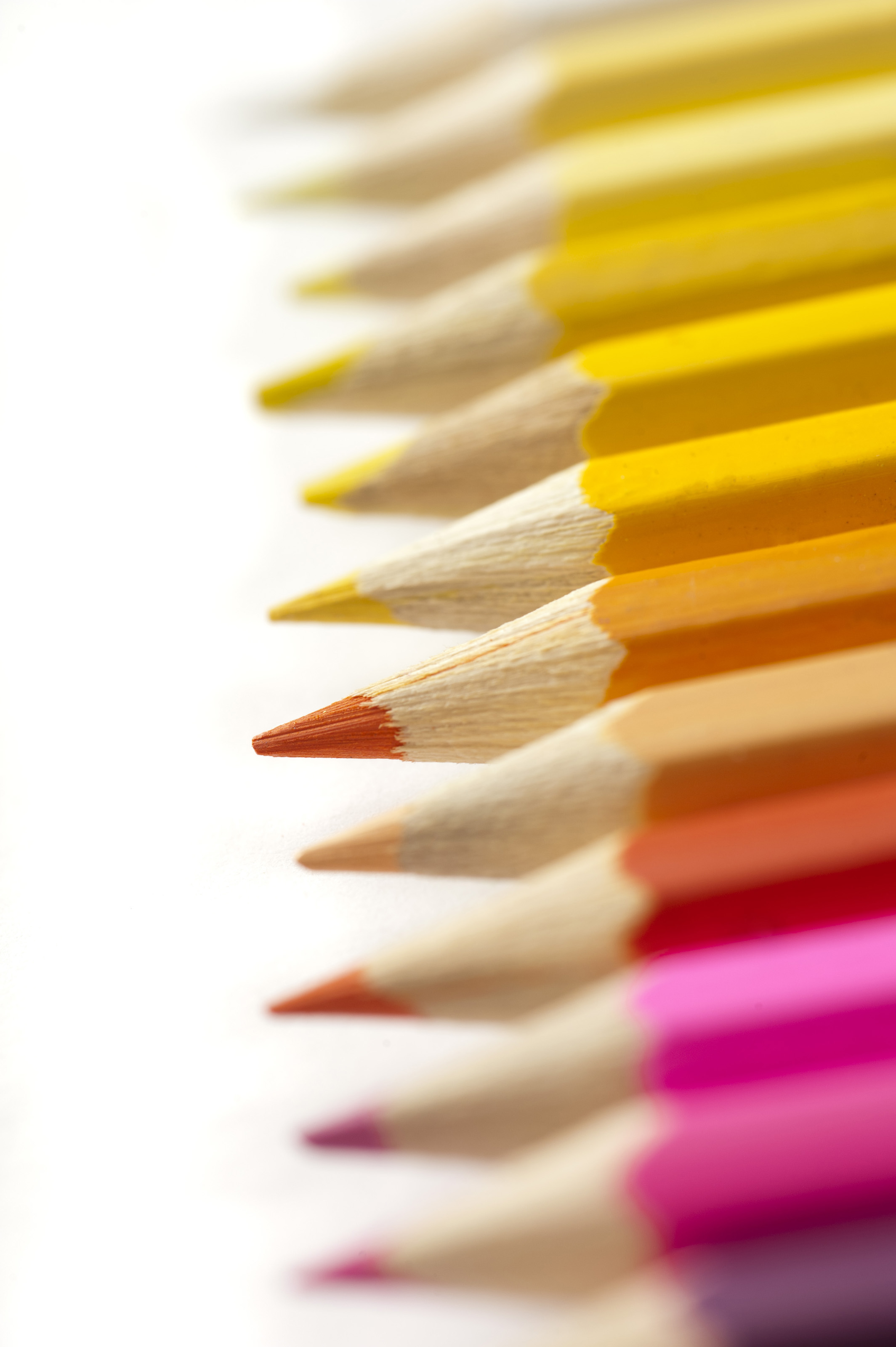 Keywords: artistic, colorful, creativity, inspiration, pencils, colored, pencil crayons, variety, set, white background, selection, vibrant, tip, spectrum, in a row, colours, red, orange, yellow, pink