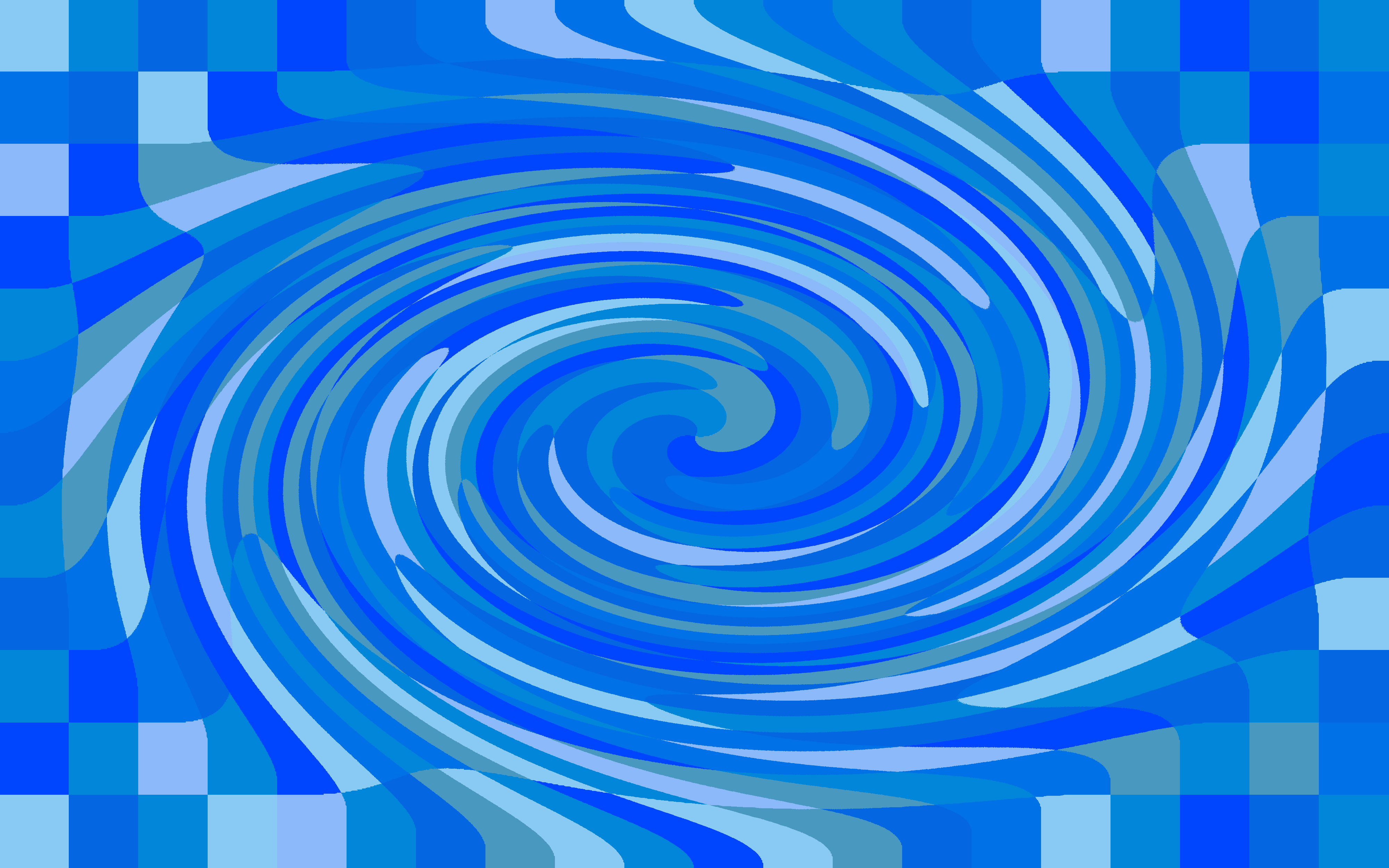a blue checked background with a twisting whirlpool like distortion, illustrarion with an aquatic colour sceheme