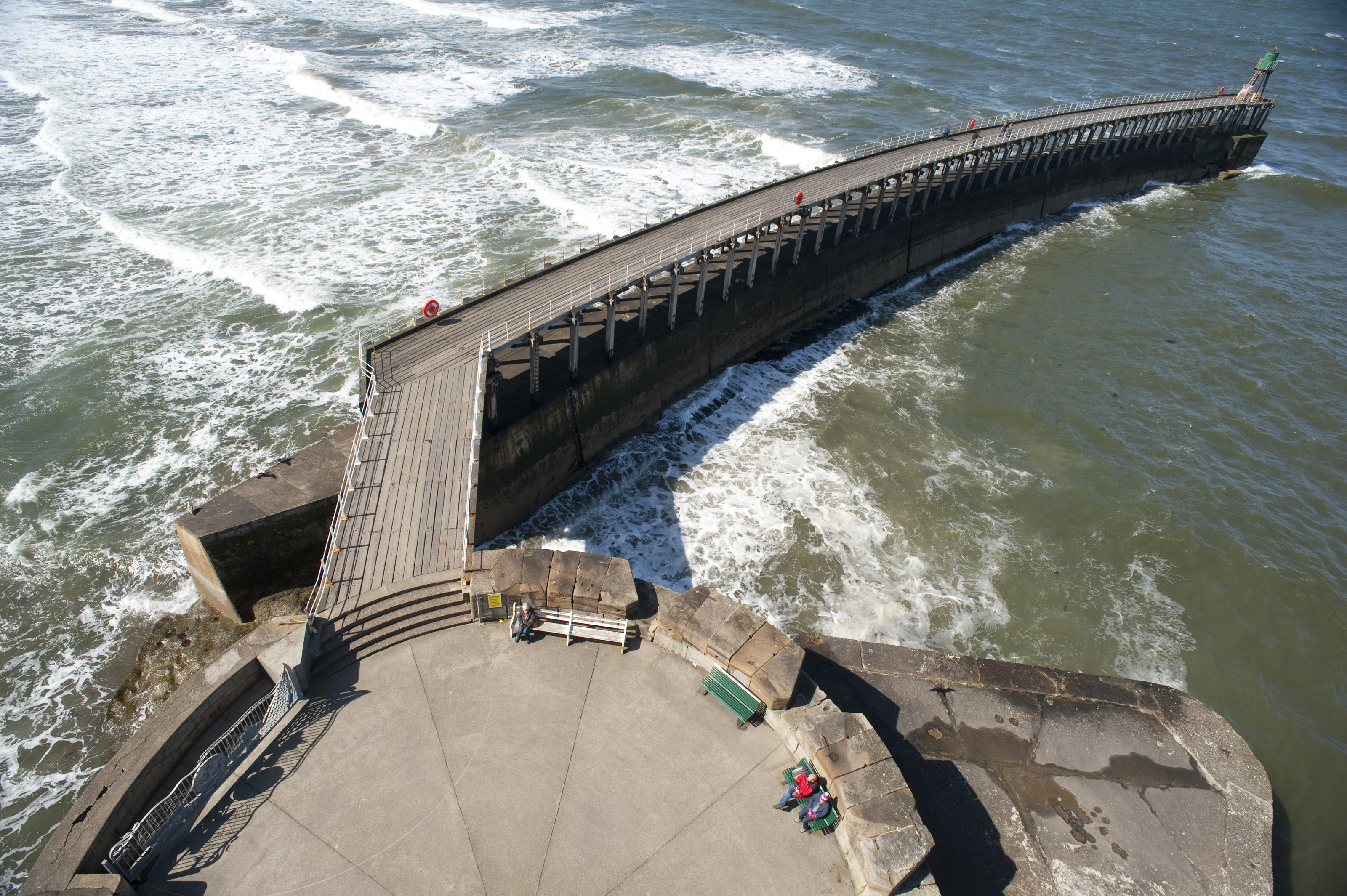 Keywords: entrance, ocean, stone, pier, historic, surf, coastal, town, west, landmark, marine, england, fishing, aerial, promenade, harbour, seawall, whitby, north yorkshire, defenses