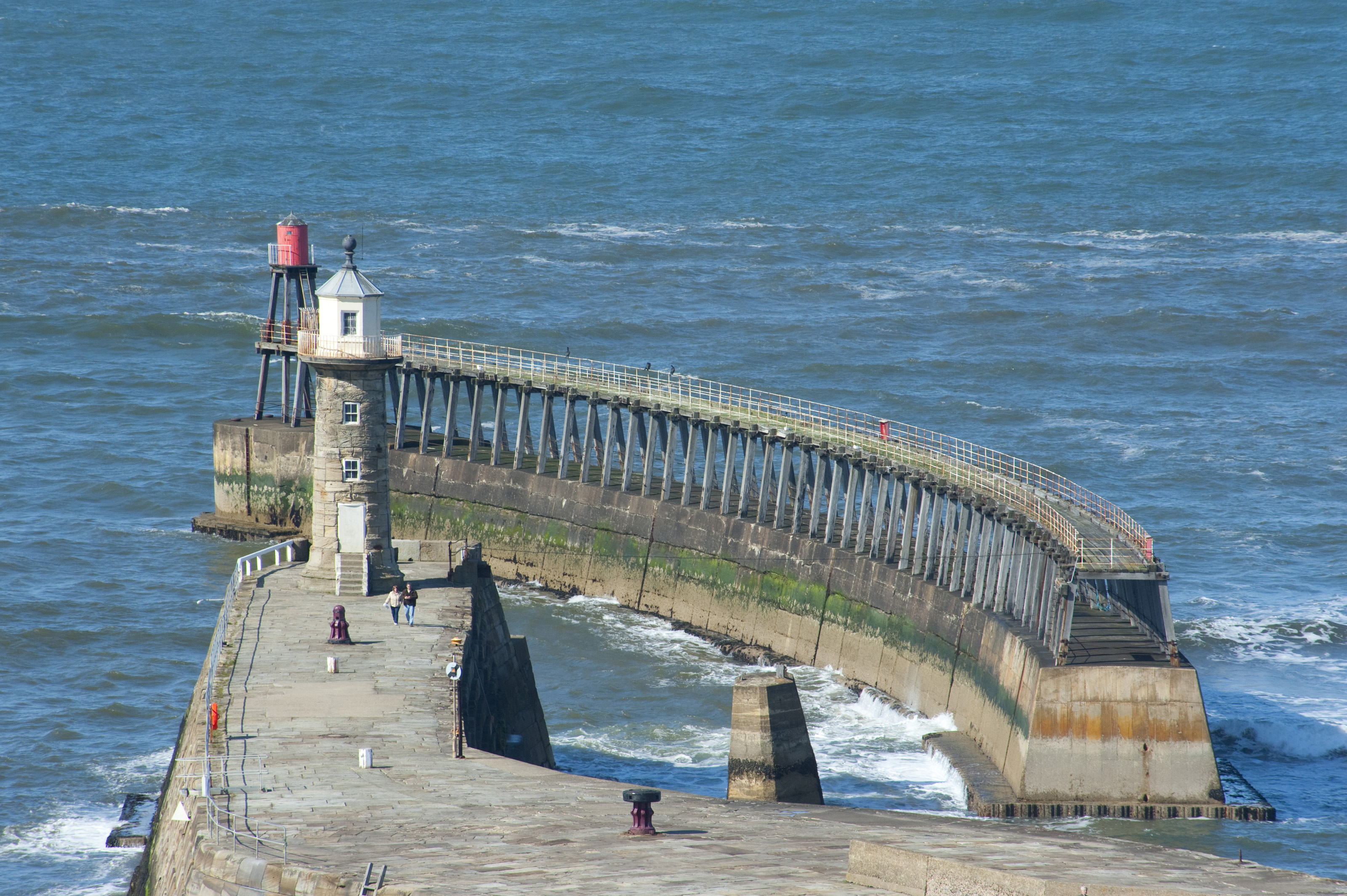 Keywords: whitby, north yorkshire, england, entrance, pier, coastal, warning, lighthouse, navigation, beacon, landmark, nautical, marine, guide, lights, harbour, breakwater, seawall, defences, stone, curved, historical, east pier, ocean, currents