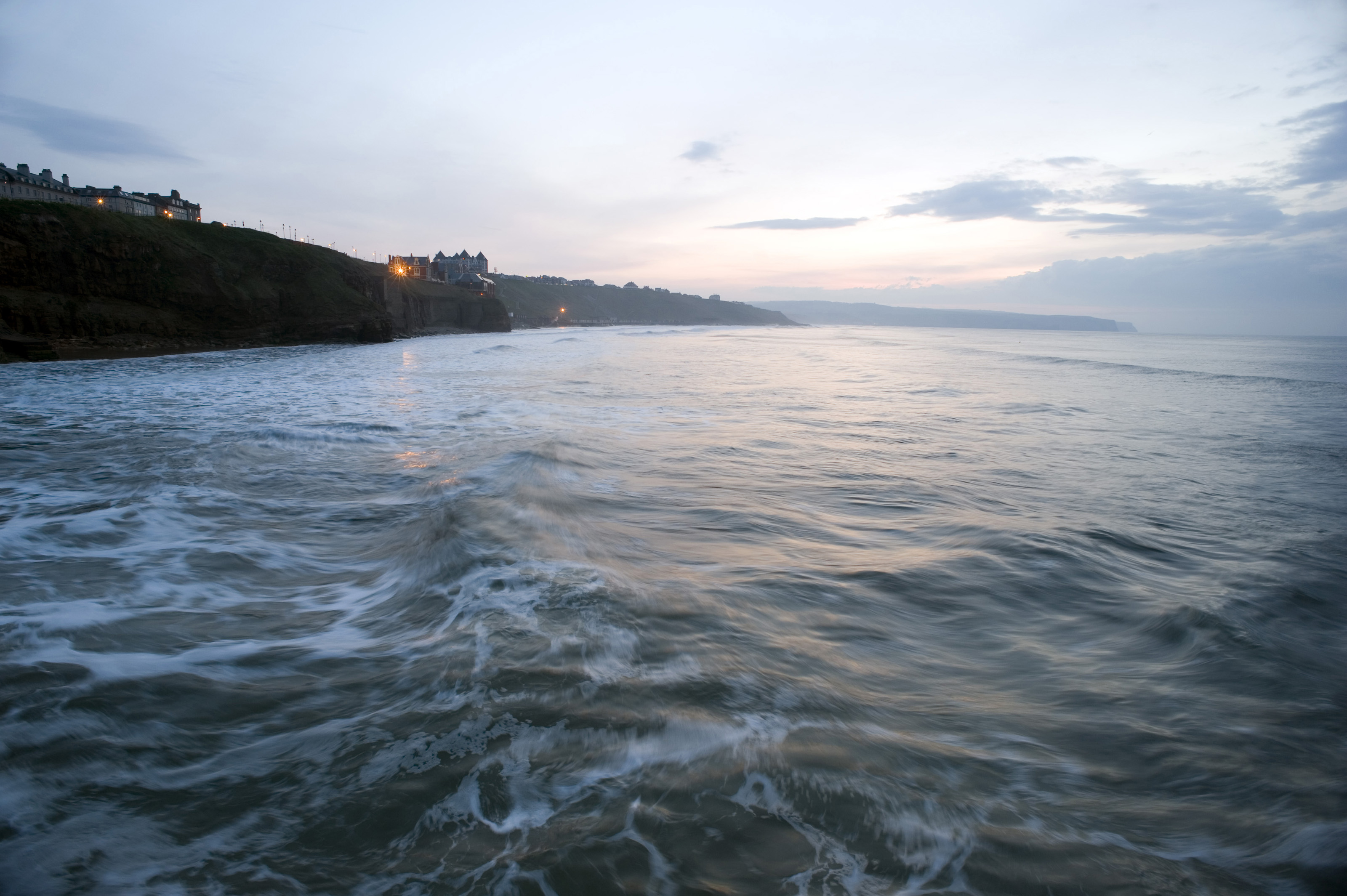 Keywords: travel, ocean, seascape, coastal, coastline, view, evening, nautical, marine, distance, dusk, england, village, english, cruising, sightseeing, topography, whitby, north yorkshire, sandsend