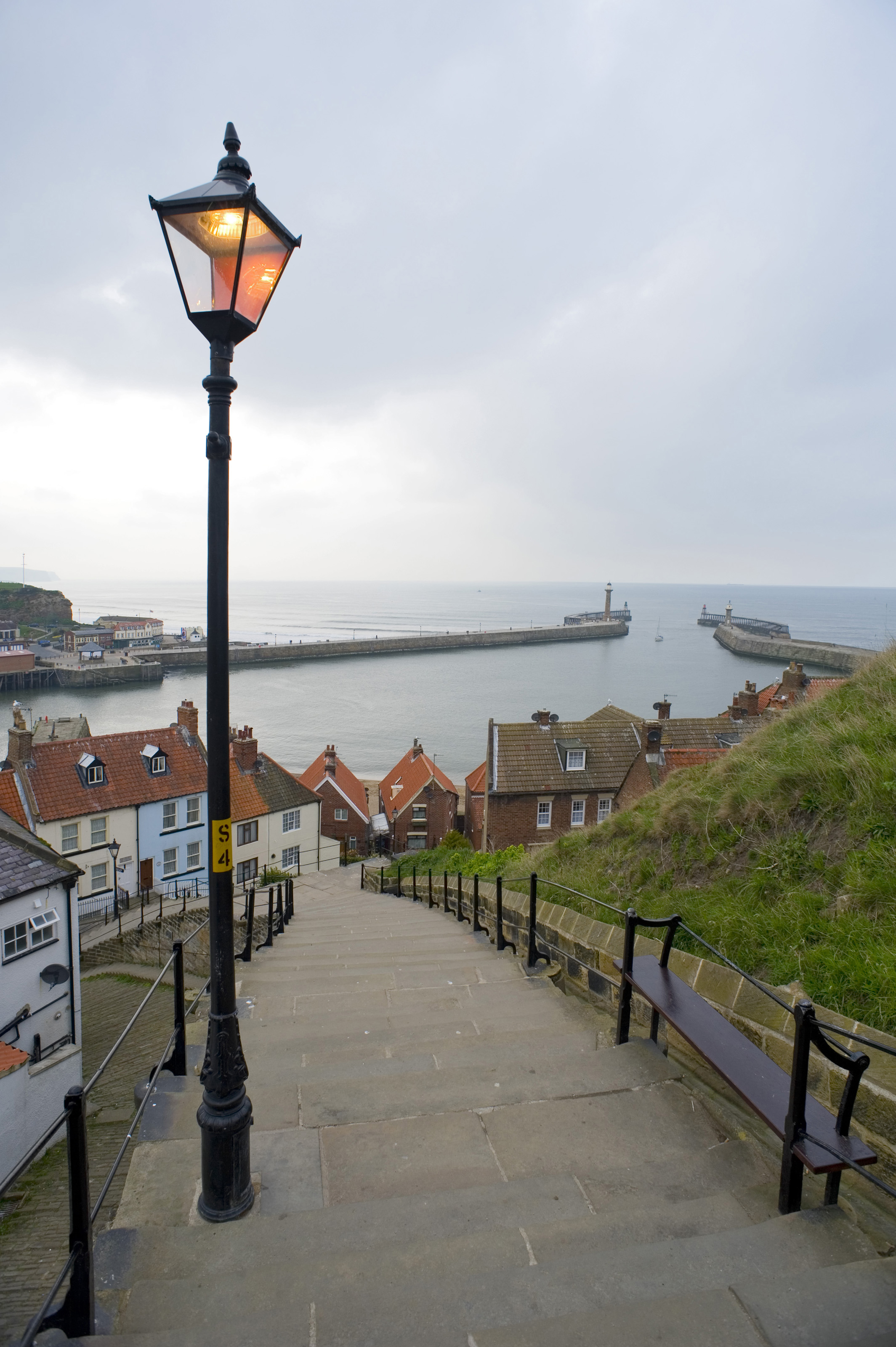 Keywords: whitby, north yorkshire, england, view, houses, town, church, steps, harbour, hillside, lamppost, piers, tate hill, 199, ocean, scenic, historical, travel, coast, sightseeing