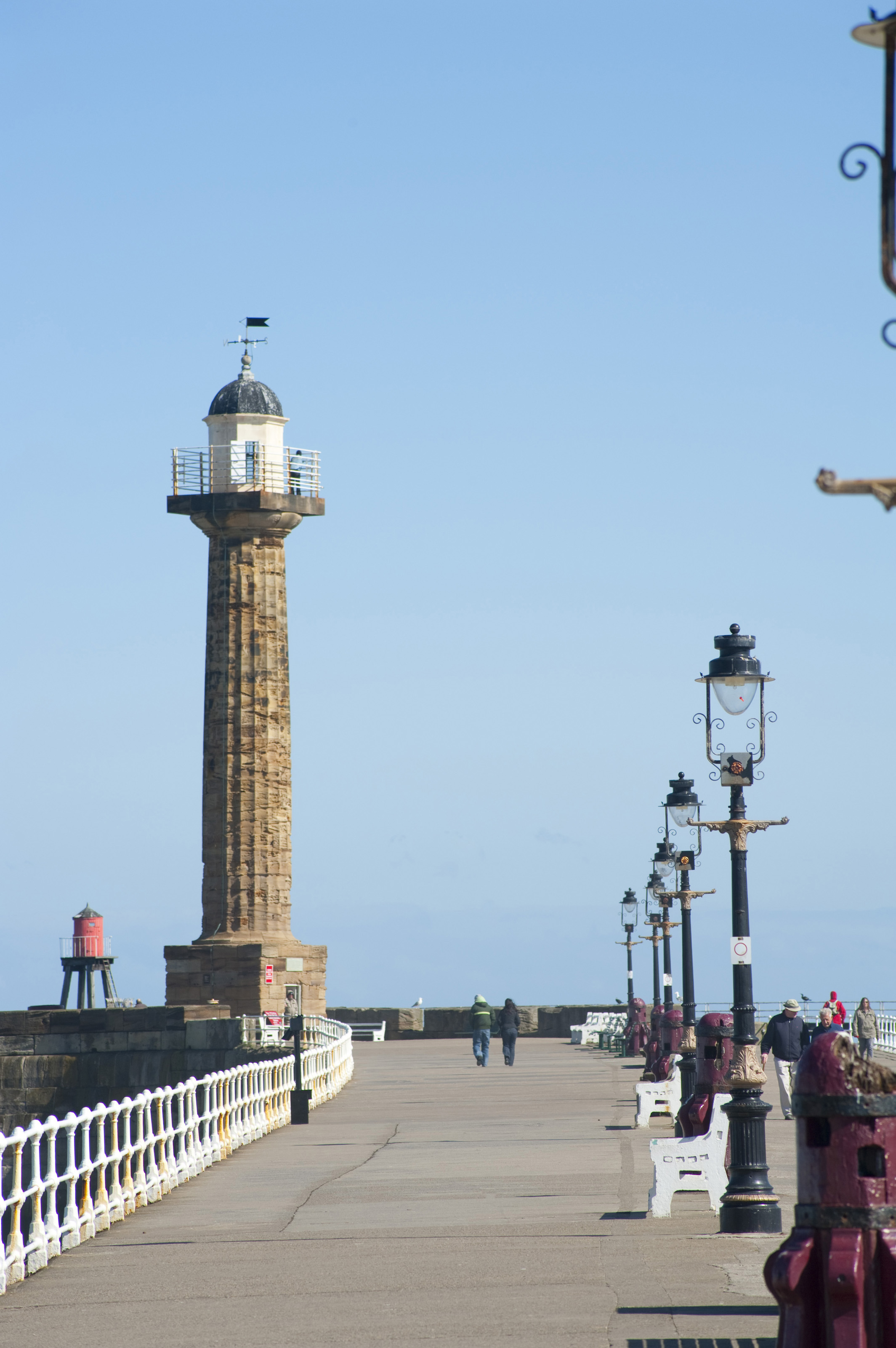 Keywords: whitby, north yorkshire, england, blue, sky, background, lamp, light, old, pier, tall, historical, west, navigation, landmark, maritime, architecture, lighthouse, lanterns, steetlights