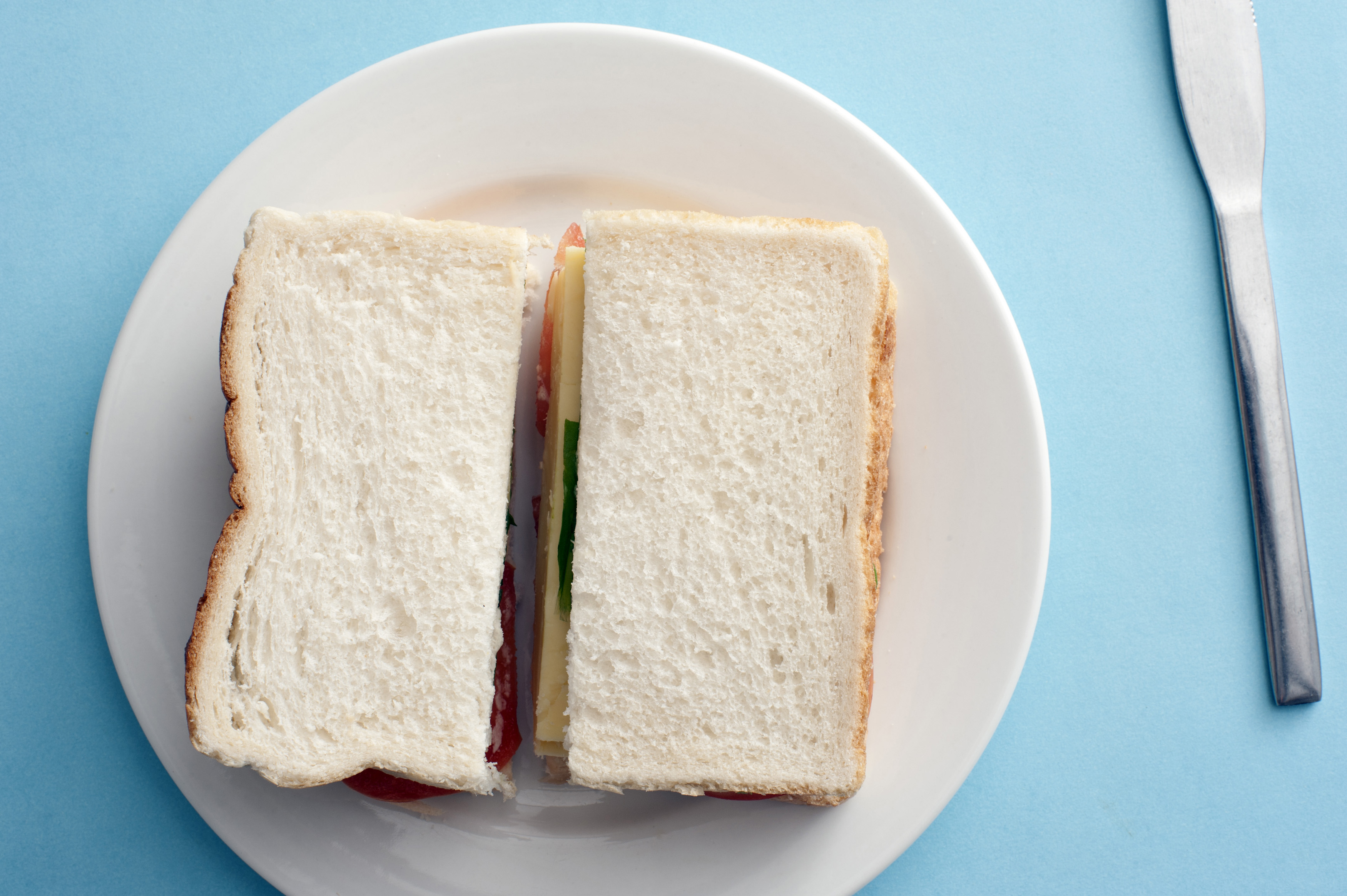 12776 Above view of white bread sandwich - this image by freefoodphotos is licensed under a Creative Commons Attribution 3.0 Unported License.