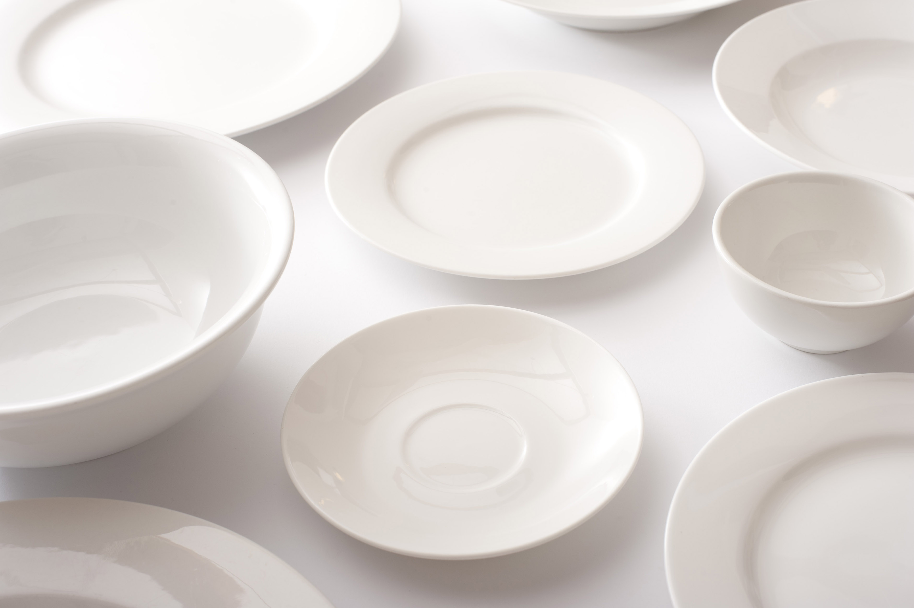 17164 Assorted clean white plates, saucers and bowls - this image by freefoodphotos is licensed under a Creative Commons Attribution 3.0 Unported License.