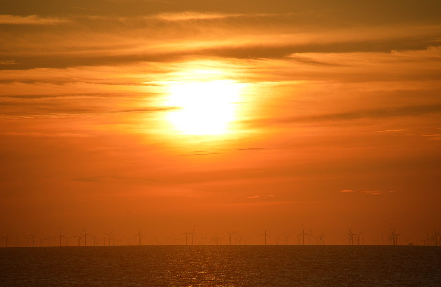 17037 A windfarm at sea with sunset - this image by DawnyH is licensed under a Creative Commons Attribution 3.0 Unported License.