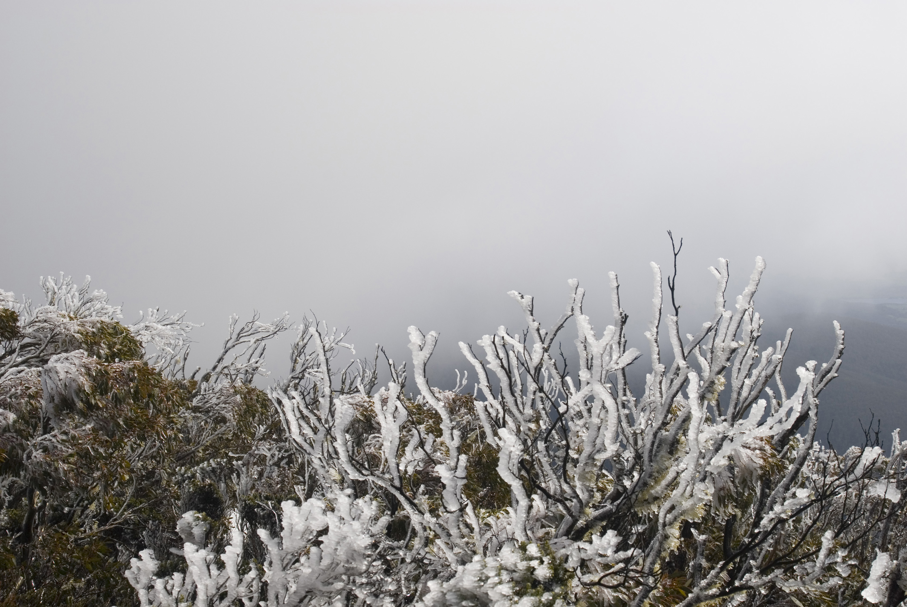 Keywords: mountain, frozen, freezing, moisture, plants, fog, frost, climate, condensation, altitude, temperature, australia, reduced, tasmania, visibility