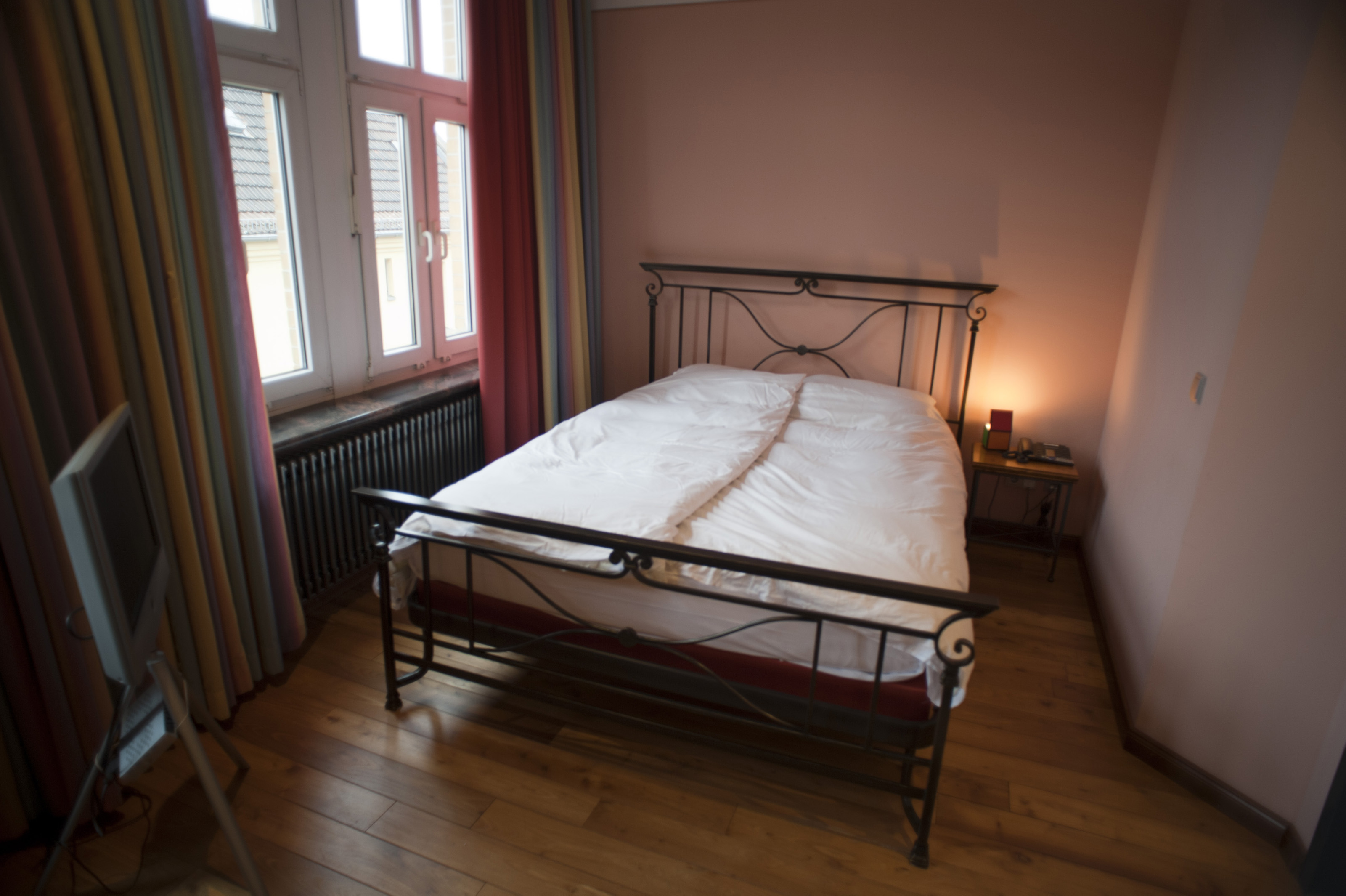 Keywords: bed, bedroom, decor, floor, furniture, hardwood, interior, minimalist, window, wrought iron, bedstead, classic, double, home, small, europe, european, continental quilt