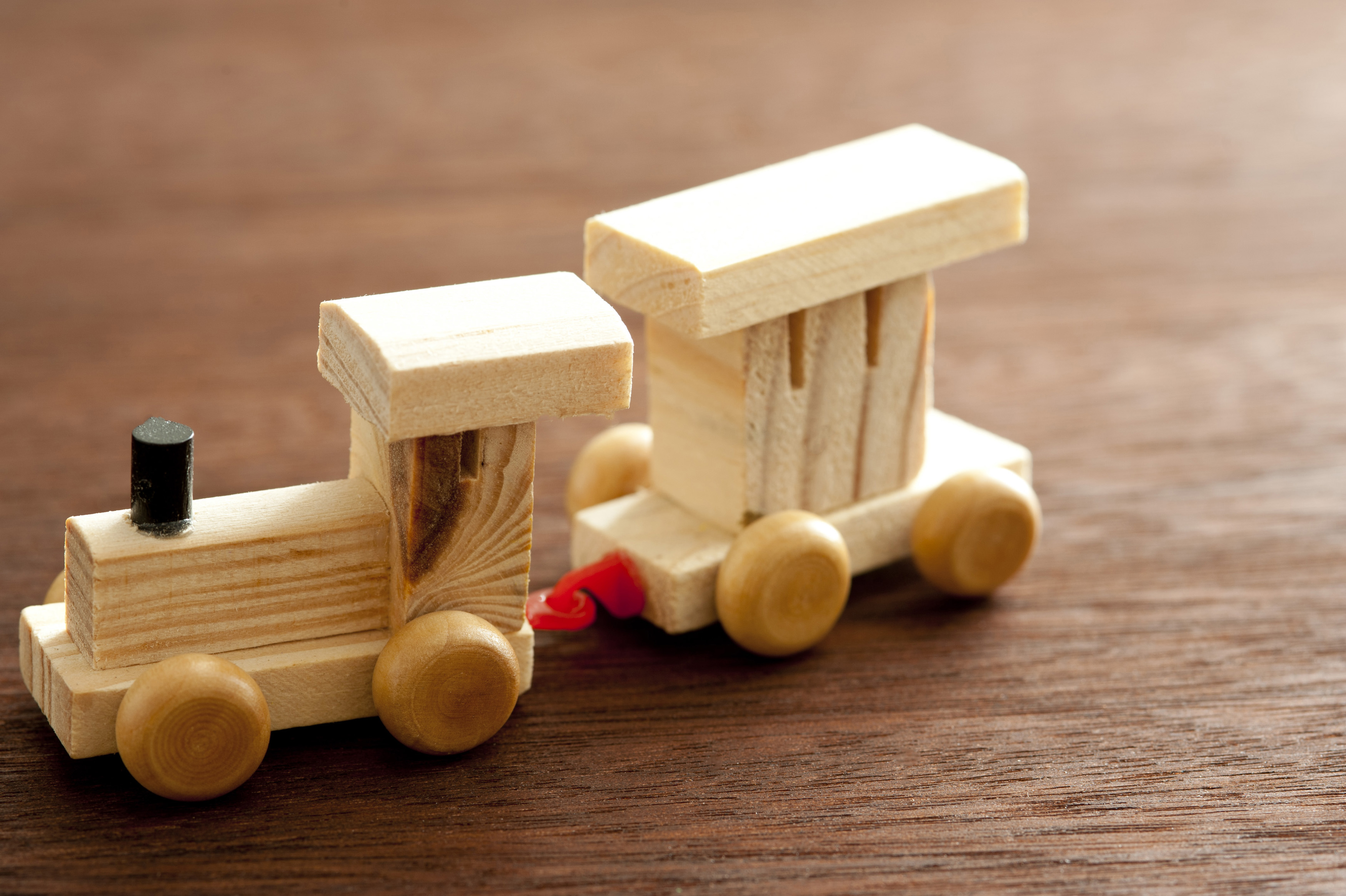 Photo Title: Wooden Train and Caboose Car on Wood Surface