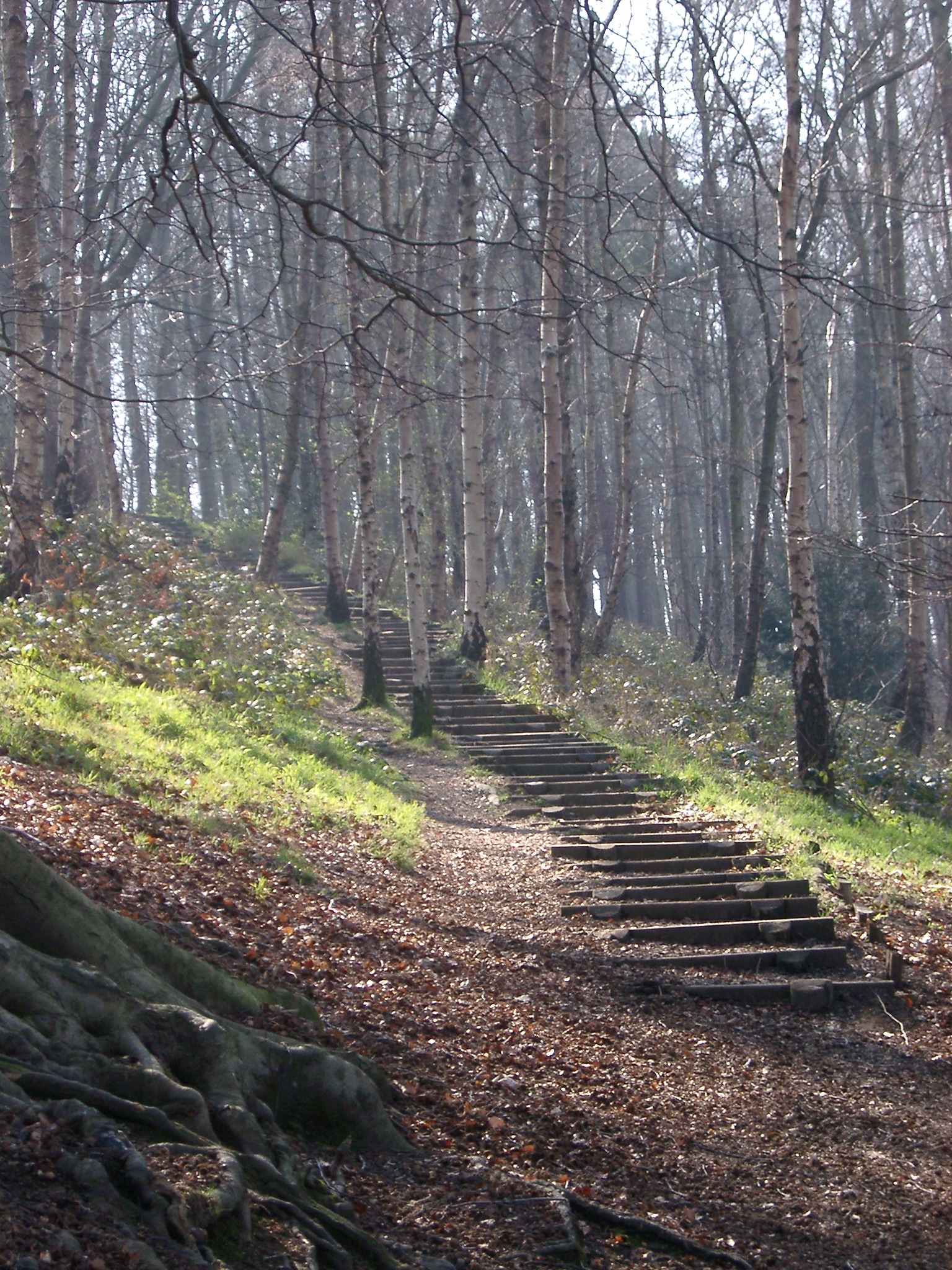 Keywords: footpath, woods, woodland, trees, steps, walkway, footpath, public footpath, track, tree, grass, green, outdoor, nature
