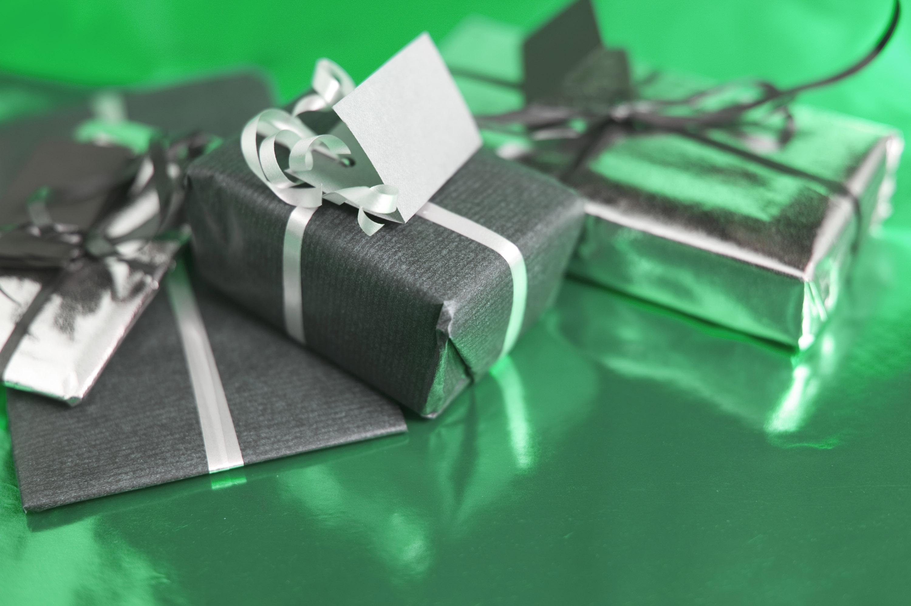 Keywords: christmas, xmas, festive, st patricks day, seasonal, holiday, yule, yuletide, green, colorful, box, present, gift, labels, ribbon, wrapped, wrapping, small, reflective, metallic, shiny, glossy, sparkly, ribbons
