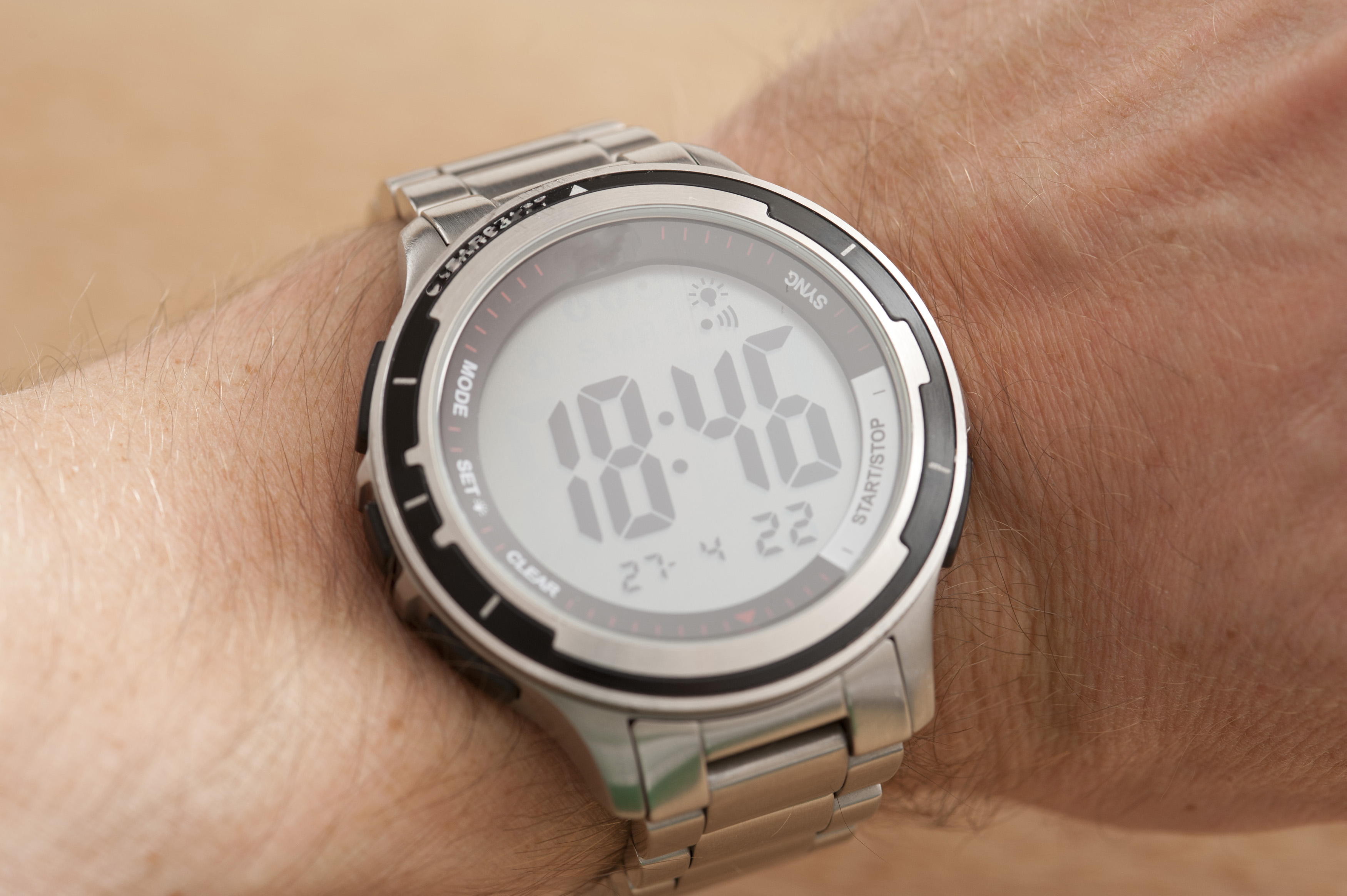 Photo Title: Silver electronic watch on the wrist of a man