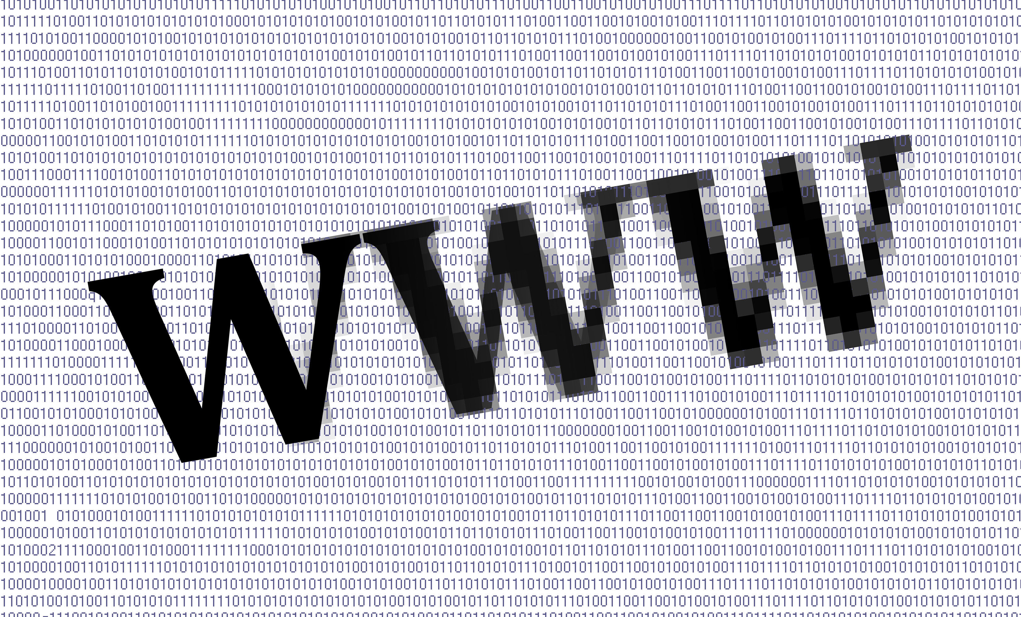 the letters www (world wide web) on a background of 'digital noise'