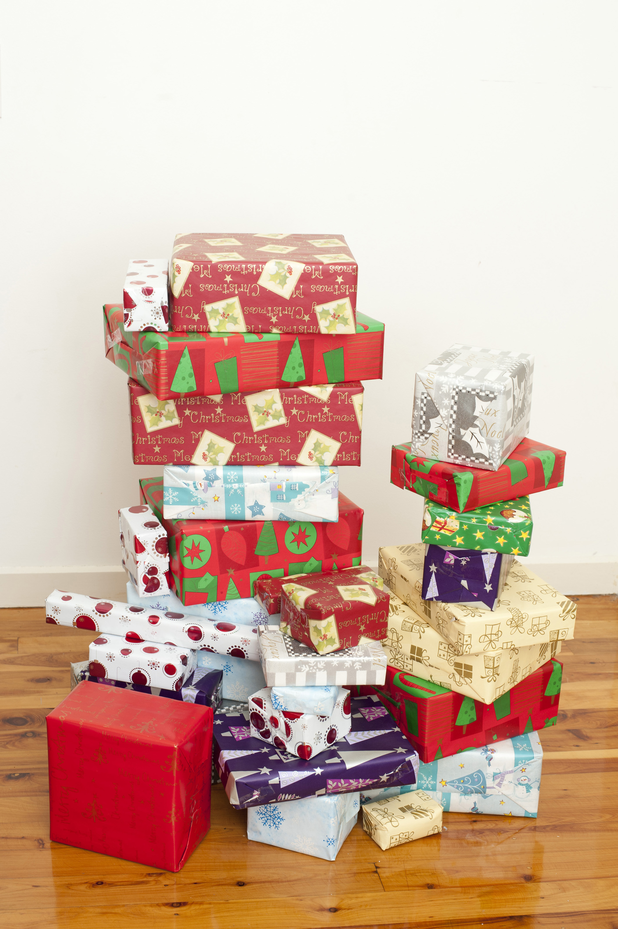 8675 Pile of gift boxes wrapped in paper, on the floor - this image by christmashat is licensed under a Creative Commons Attribution 3.0 Unported License.