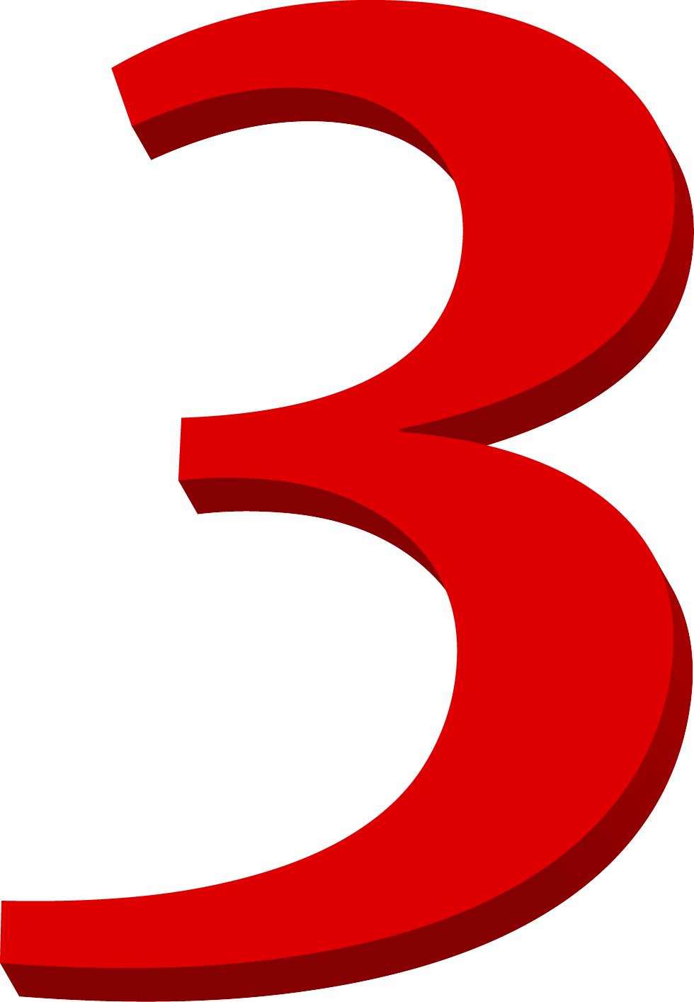 Illustrated number 3 in red colours.