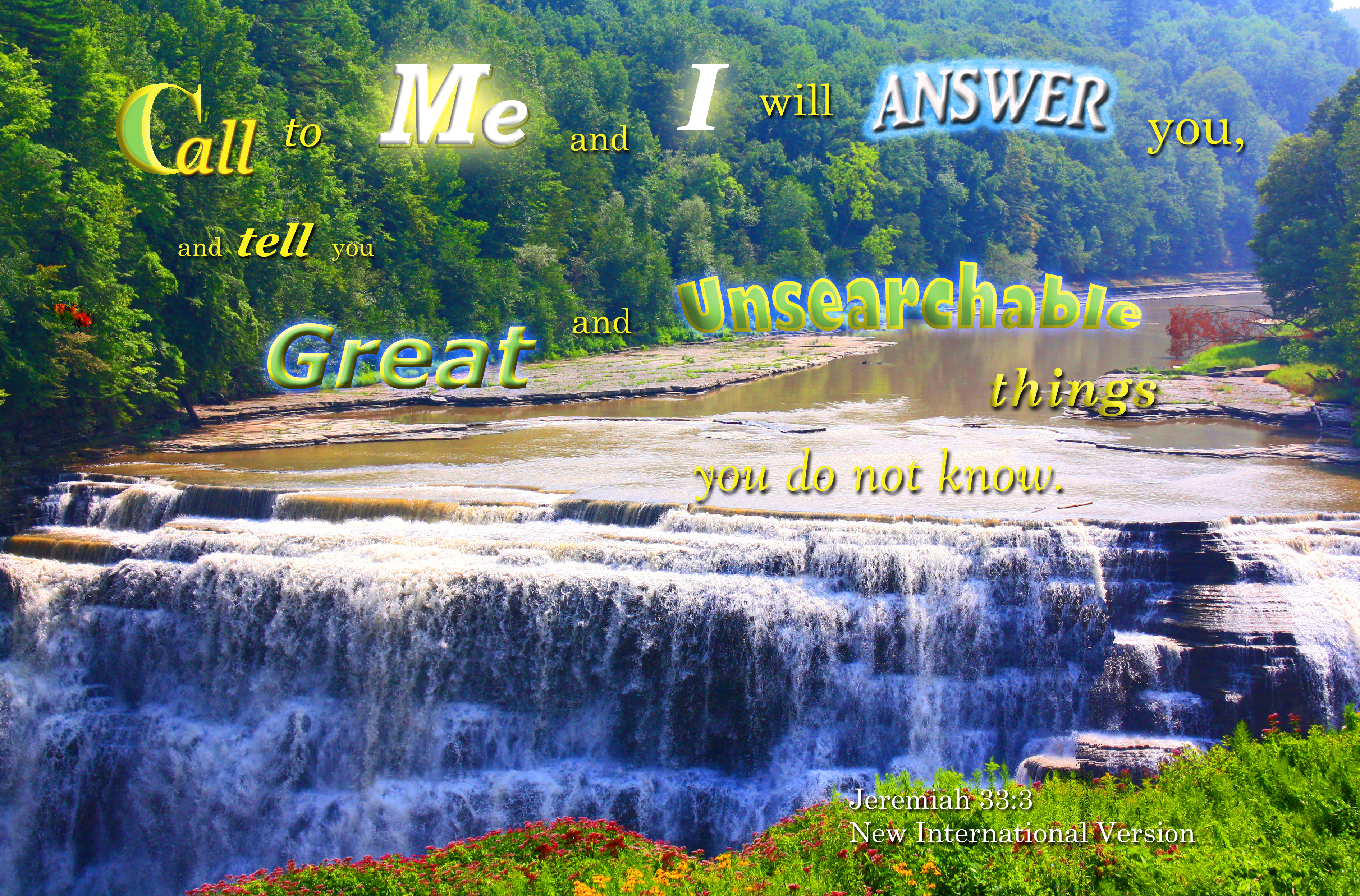 Keywords: Bible, waterfall, river, trees, flowers, canyon, water