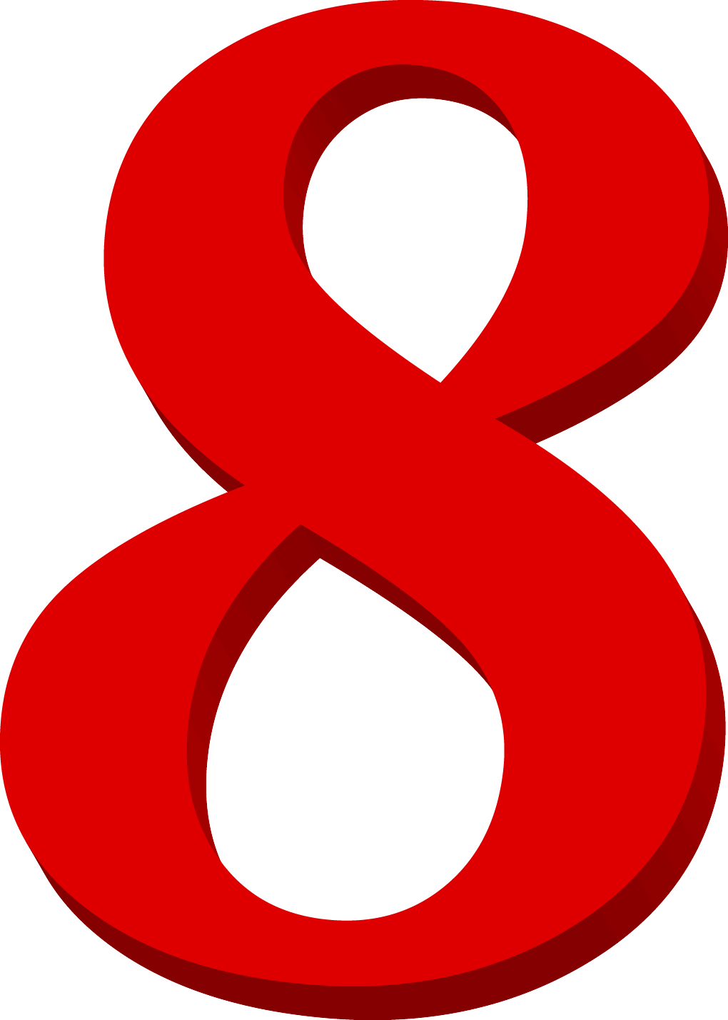 Illustrated number 8 in red colours.